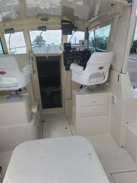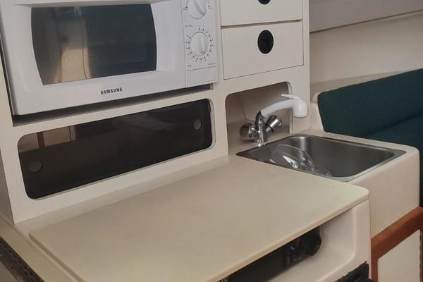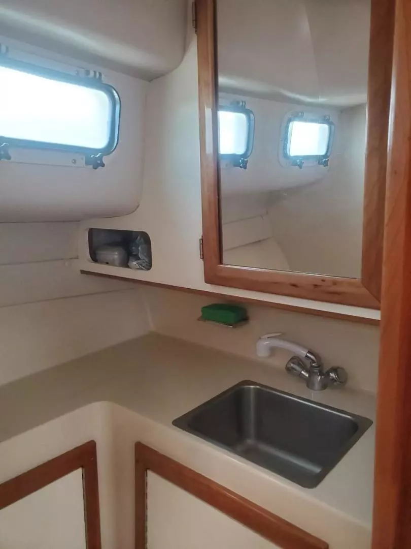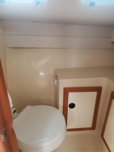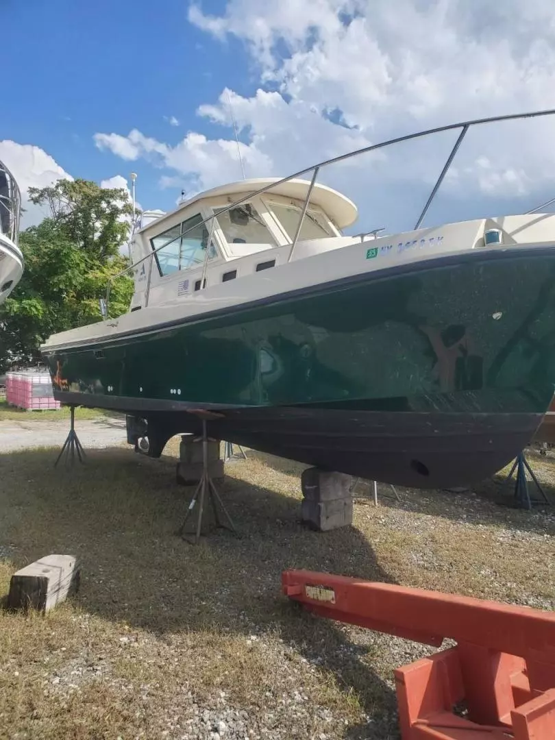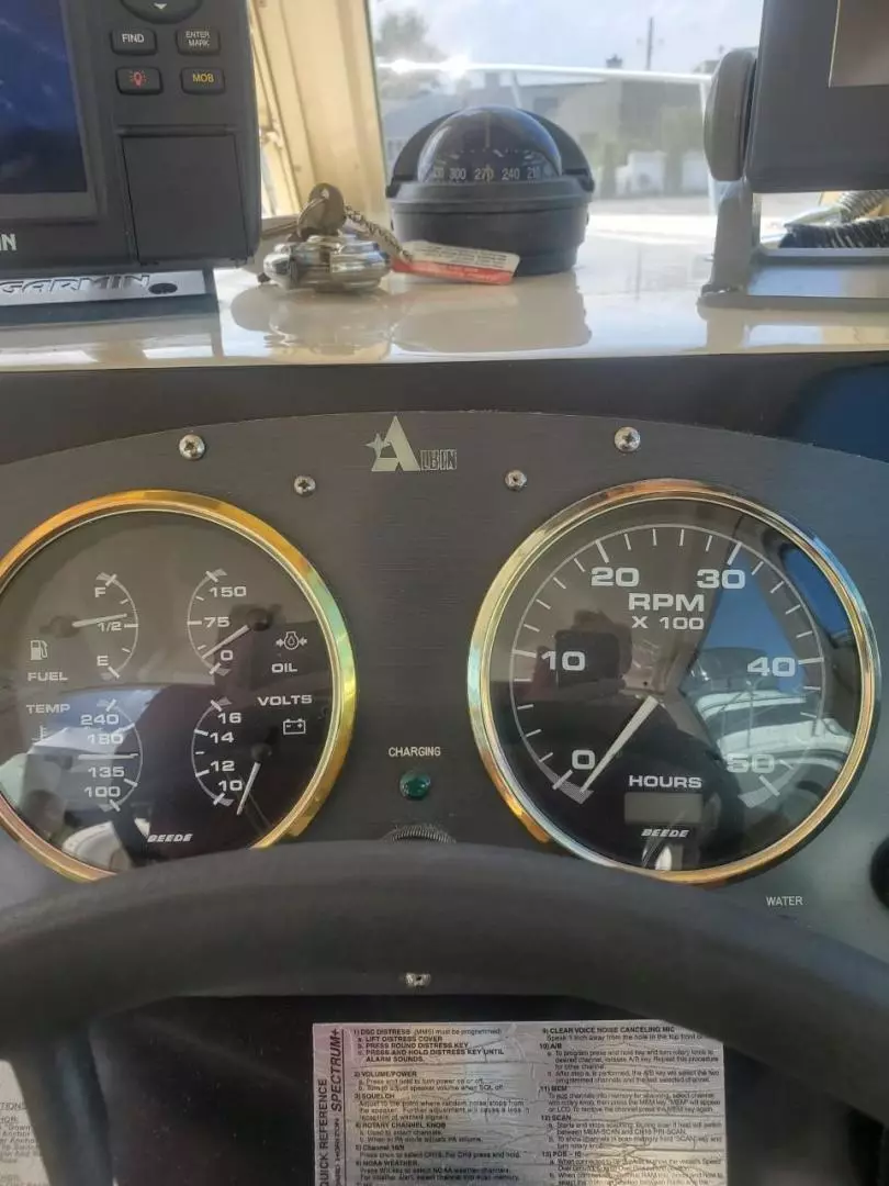 Many consider the Albin 28 TE the perfect cruising yacht under 30 feet. She has a single Yanmar 315 Hp Diesel engine with less than 680 hours. She has a modified V-Hull, wide beam, hard aft chines, and a prop-protecting skeg keel. She is an extremely efficient vessel with reported average fuel of less than 2 gallons per at at an 8-10 knot cruise. She is capable of 16-18 knots cruise speed with reported average fuel consumption of 4-5 gallons per hour. She offer full overnight accommodations below and a roomy cockpit and helm area. Her solid construction and sea kindly handling make her and exceptional family cruiser or fishing vessel.