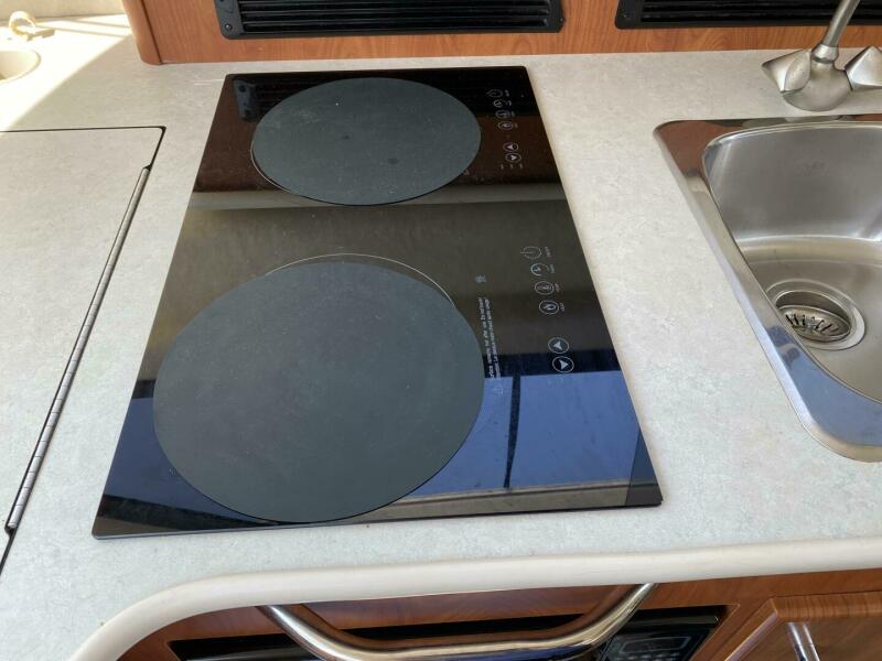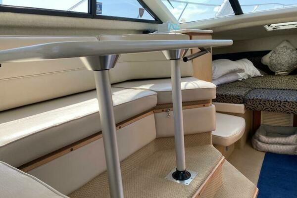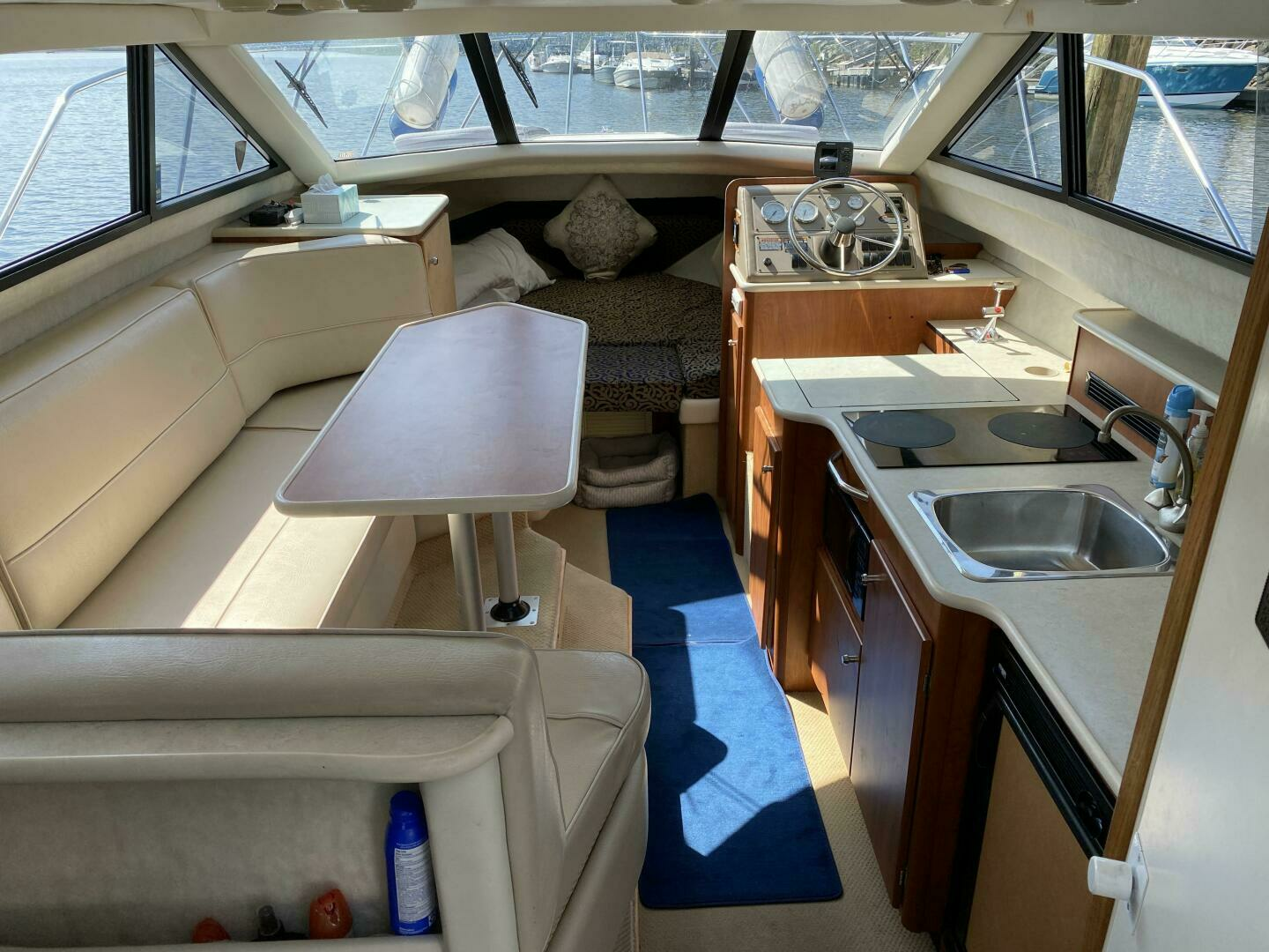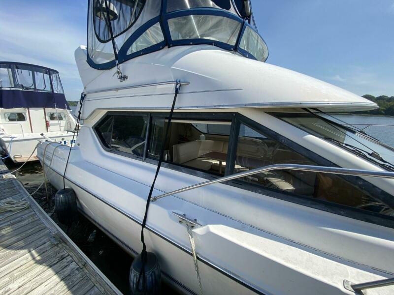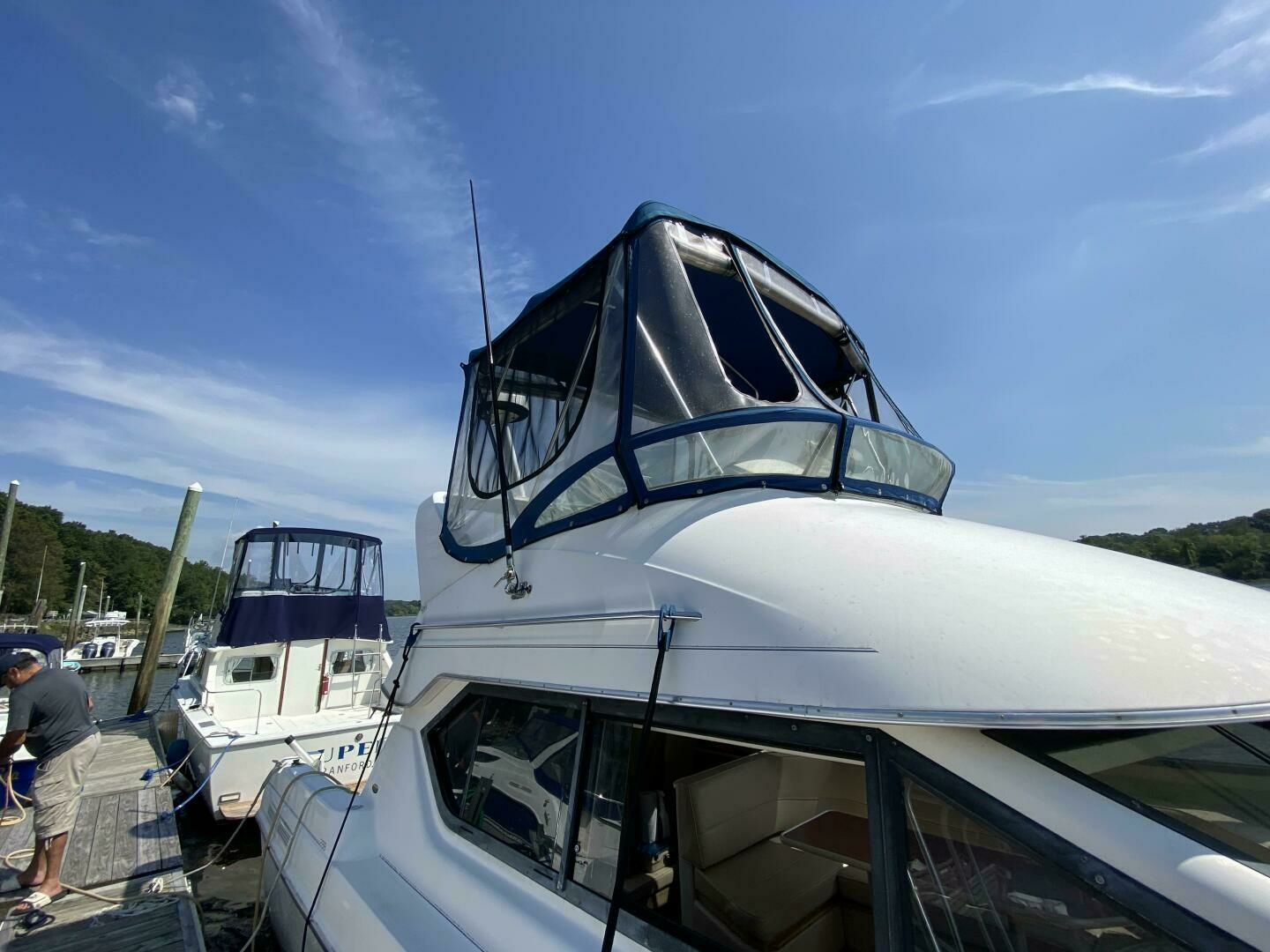 The flybridge has stunning views and a comfortable ride with L-shaped settees and a helm seat that swivels. The canvas is in great condition and has full isinglass and insect screens for outside enjoyment after the sun goes down.