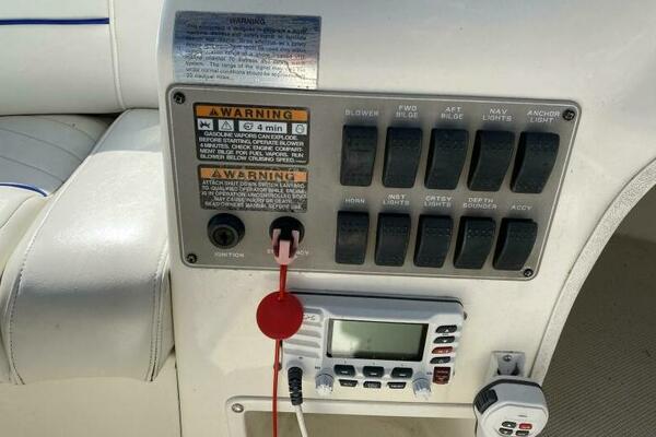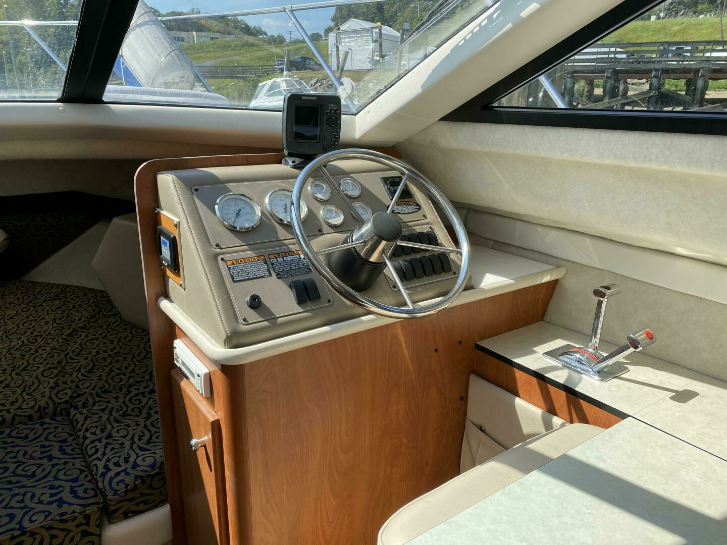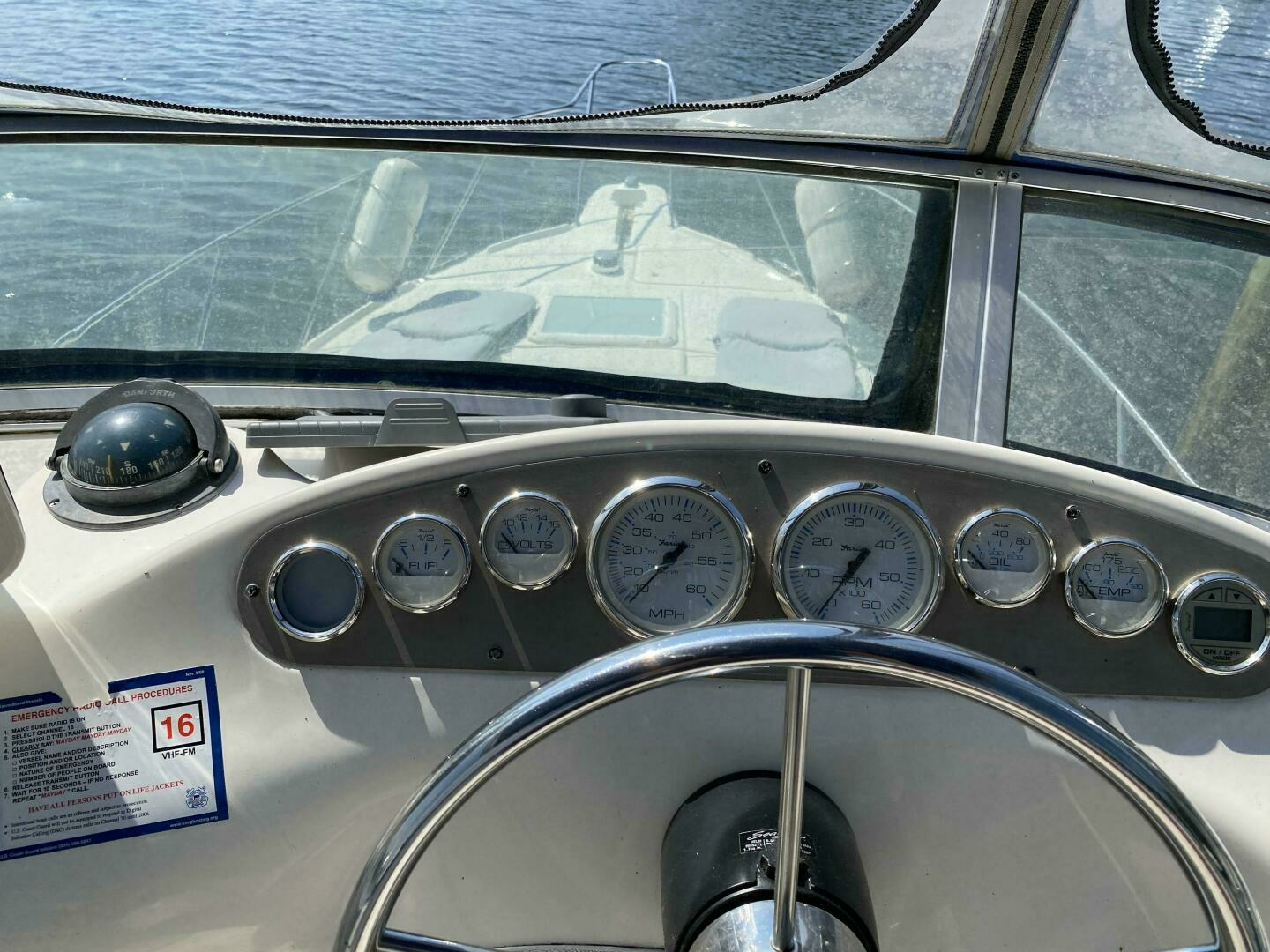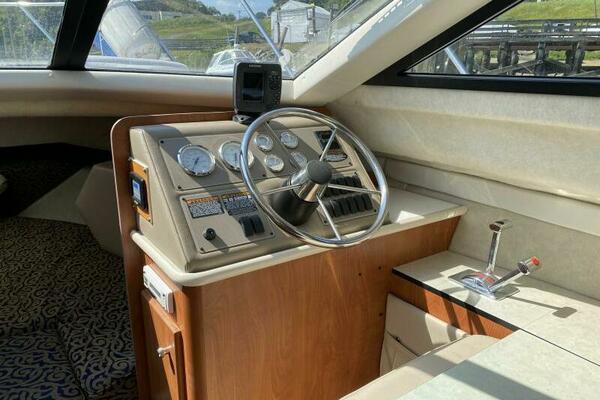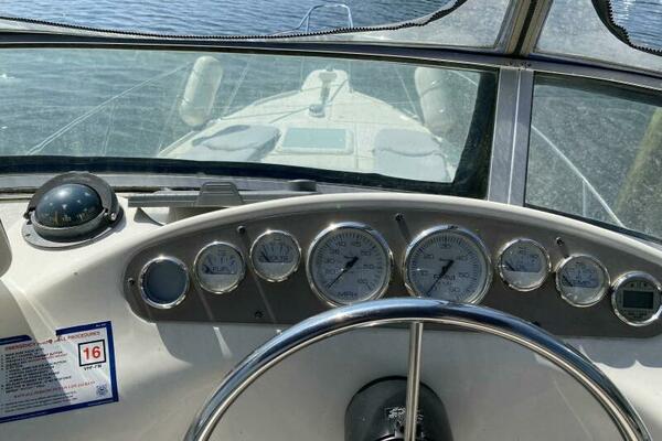 The Bayliner 288 Classic is a well-equipped cruiser with amenities, comfort and space generally found in larger boats. This example is in good condition with light use. MerCruiser 350 MAG provides 300 hp with only 625 hours. A/C-reverse heat, full electronics, great canvas round out the package.