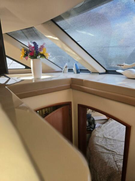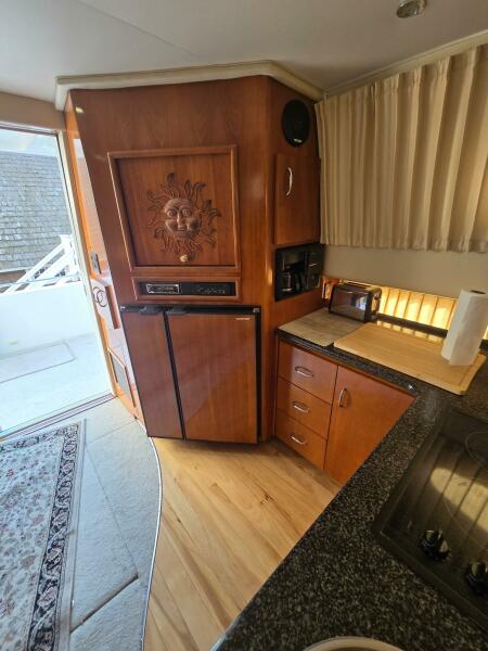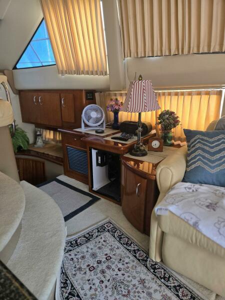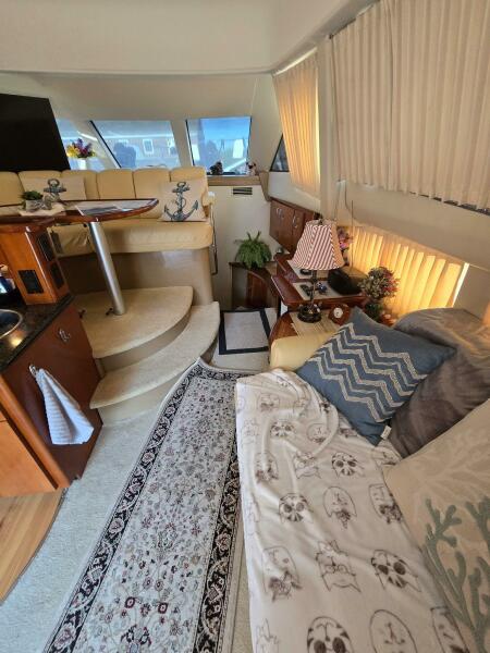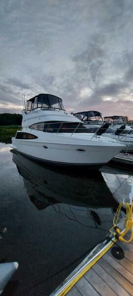 2003 Carver 360 Sport Sedan with molded stairs to the commard bridge that is well appointed for the captain and crew for those extended cruising destinations. The spacious interior that transforms into a comfortable living space to accomodate family and friends with all the modern convienences, 2 staterooms, a dinette, galley and salon. The V berth master stateroom has hanging lockers and cabinets with additional storage beneath the bed. Aft to port is the head with a vaccuflush head system and large shower stall. The second stateroom with twin berths that covert to a double. The galley to port is nicely appointed with a full size refrigerator. The dinette area is poistioned for 360 degree view out the windshield and side windows. The nicely done cherry joinery has a classic appearance with excellent craftsmanship that is what Carver is known for. The slidling entrance door opens up to the rear deck area to enjoy the serene settings at anchor or at the marina. She has been well maintained by a meticulous owner if the boat needed anything it was done to perfection. Noteable recent upgrades new batteries, new 16,000 BTU air conditioning, generator serviced with carburetor, fuel pump and waterpump impeller, 42" smart TV for the salon, 24" smart TV for the berht, hull bottom barrier coated, repack rudder shafts and vaccumflush generator. The Carver is ready ready for the next chapter. Shown by appointment located at Safe Harbors Deep River Marina, Deep River, CT
