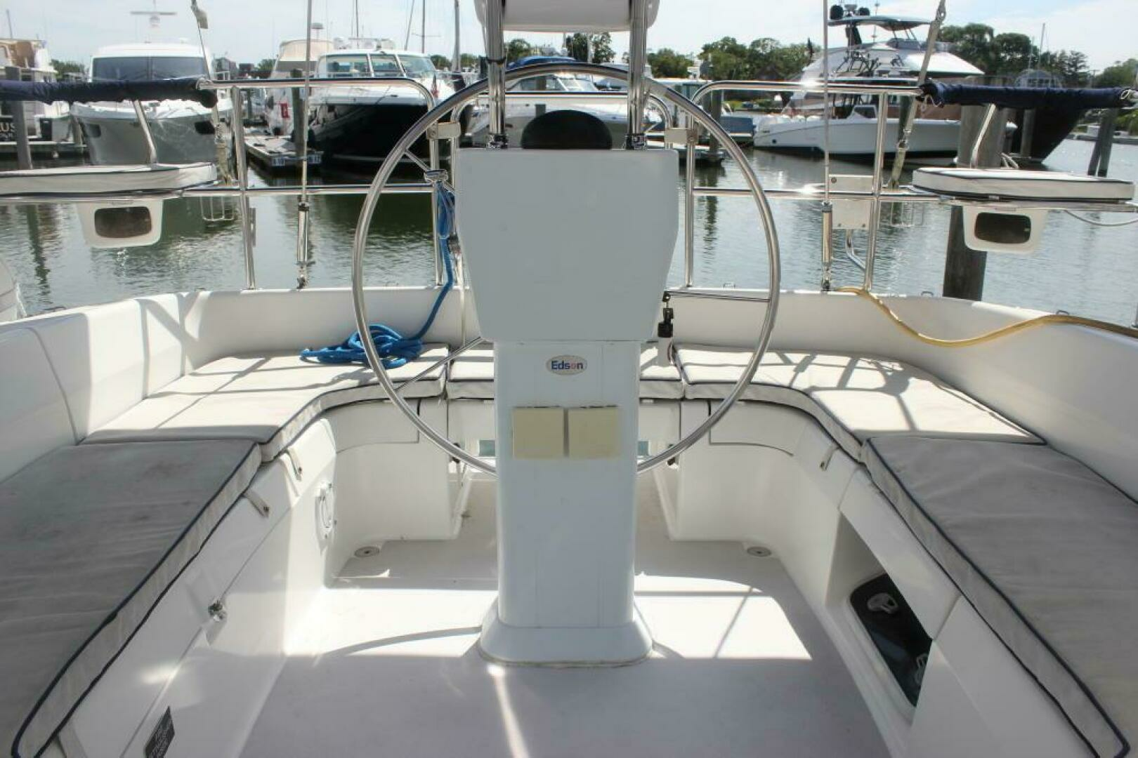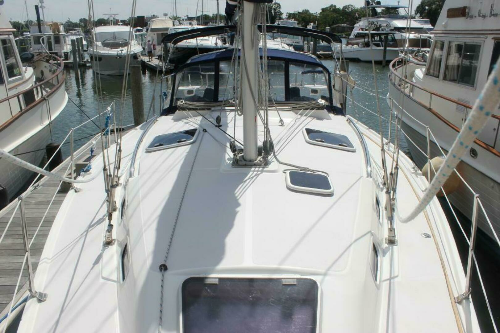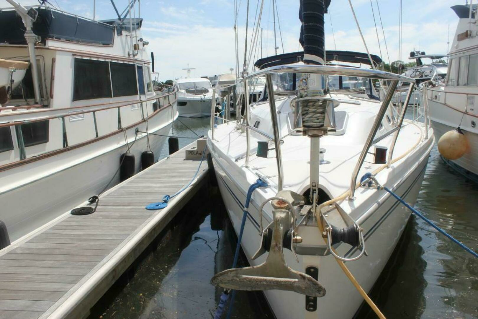 Polaris is a well kept 350 with a shoal draft wing keel. Her below decks are air conditioned and has forward and aft staterooms with double berths, head forward to port, galley aft to starboard, salon with settee to port, 2 chairs to starboard and Nav Station aft to port. Her head has a separate stall shower, sink, vanity and electric toilet. Check out the Full Specs and call for an appointment to see her. She is located in Greenport, NY.