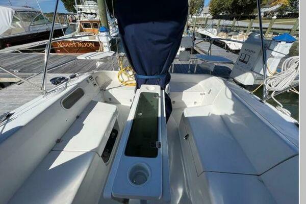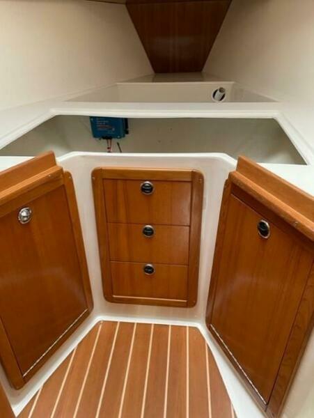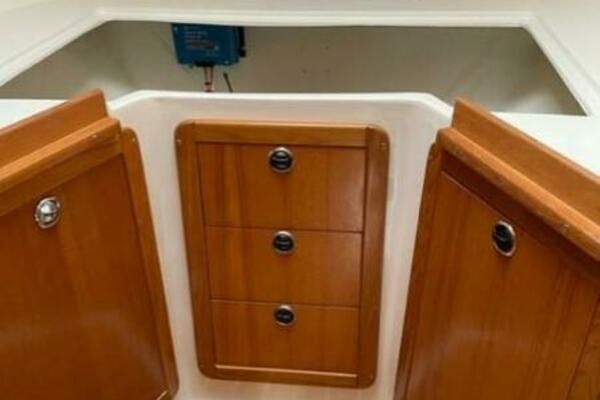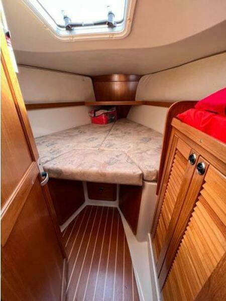 - All the way aft to port of the companionway is the fully equipped U-shaped Sea Galley. To starboard is the navigation station with fold-away seat and access to the aft cabin. The aft cabin offers a large athwartship berth with headboard, hanging locker and drawers as well as an opening hatch for additional light and ventilation.