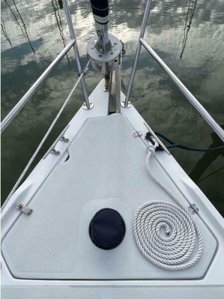 - The Aluminum spar is stepped through the deck on the keel and has inline spreaders and fore and aft lower shrouds, a sturdy arrangement that is easy to tune. She is the Tall rig with a fully batten main adding to her performance sailing. All lines are led aft to the cockpit for ease in single handing.Traditional mainsail with full battens and a dutchman system