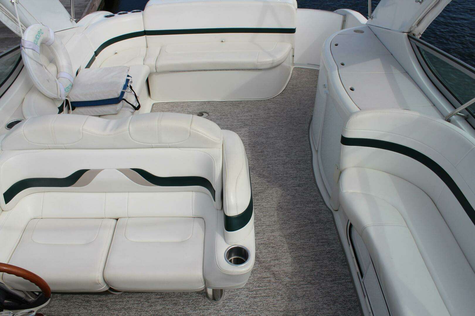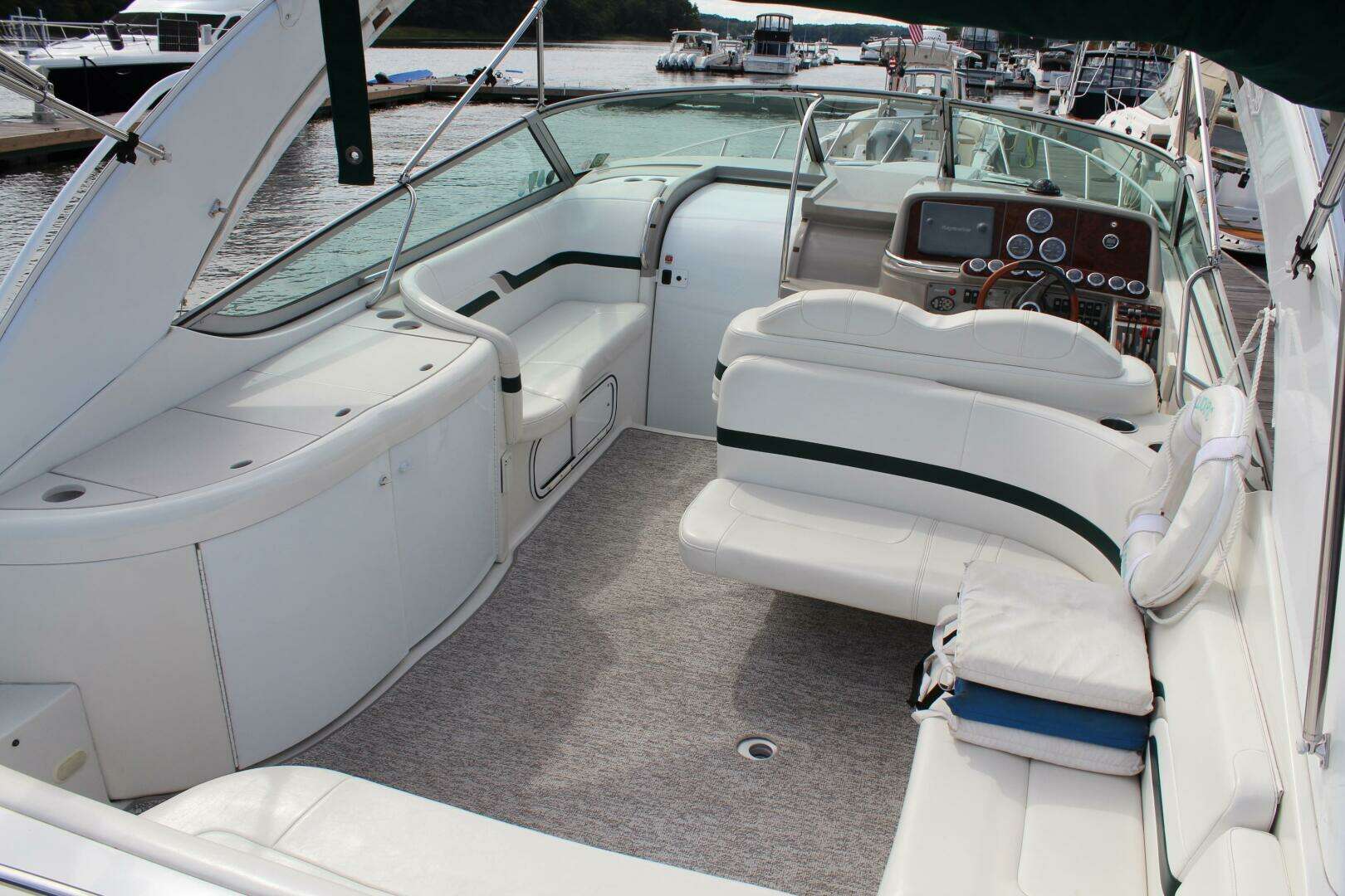 Founded in 1956, Formula Boats evolved from high-performance racing runabouts into today’s sleek, performance-oriented cruisers—renowned for smooth rides and premium craftsmanship. This 2003 Formula 370 Super Sport, meticulously maintained by her original owner, embodies that legacy. Twin 425 hp Mercruiser 496 MAG HO, fresh water cooled, engines (870 hrs) and a Kohler 7.3 kw generator deliver confident, spirited performance. Electronics include a compass, VHF, Raymarine C80 GPS/plotter/fish finder, and a Kenwood AM/FM/CD stereo.