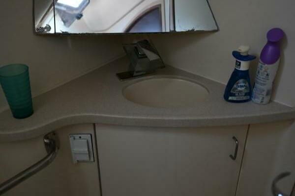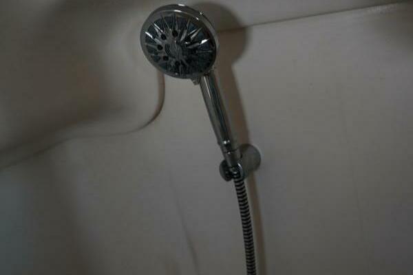 3 bathrooms with 2 showers with a bathtub in the master stateroom