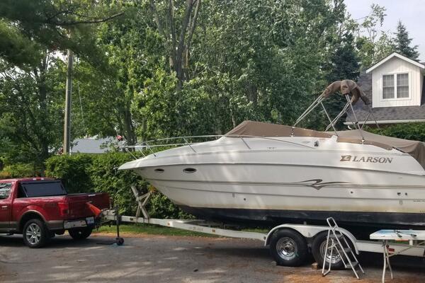This 2003 Larson 254 Cabrio is the perfect combination of performance and comfort features a matching Larson trailer, mooring cover, and full camper top!