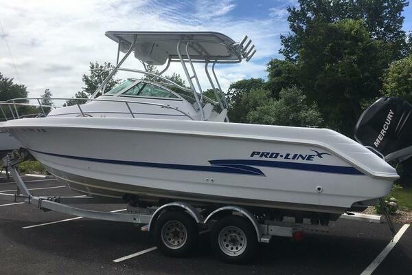 This Pro-Line 23 Walk is a well designed fishing platform with excellent power, the optional hard top and a trailer. Lightly used and well equipped this example is for sale due to health reasons. Call to see her today in Sales Tax free North Kingstown, RI today.