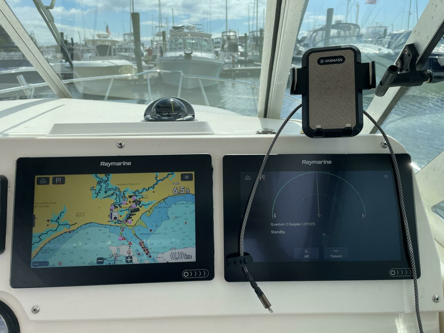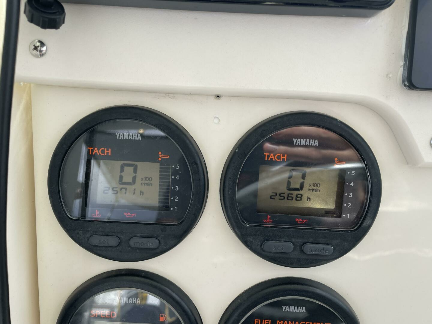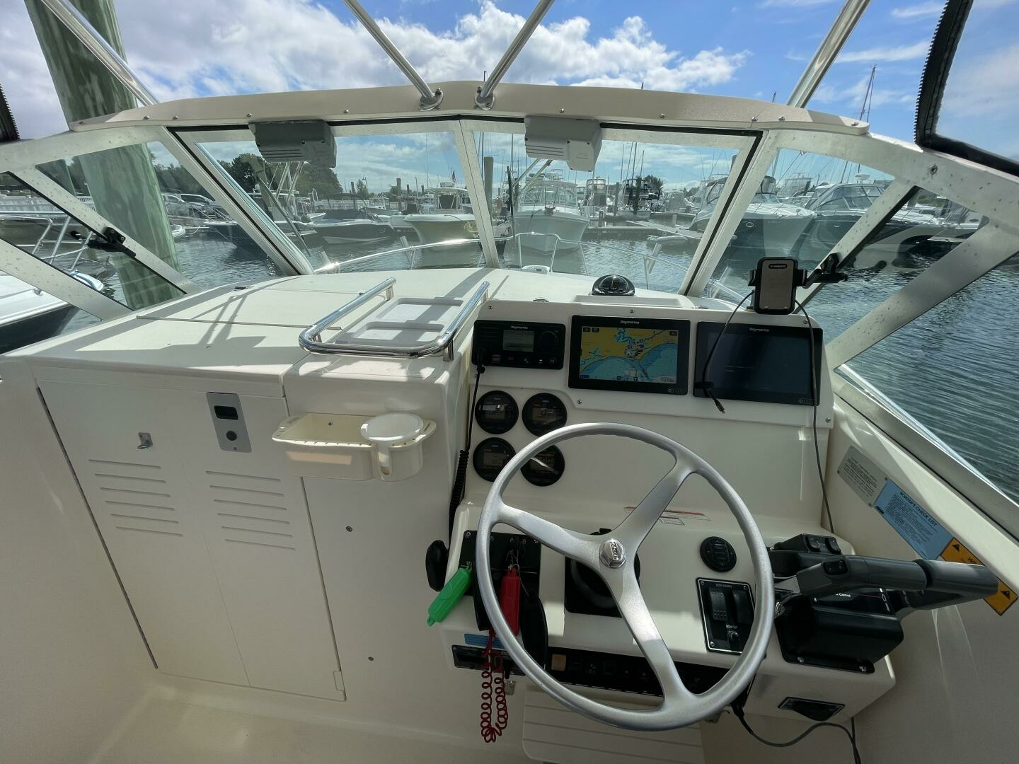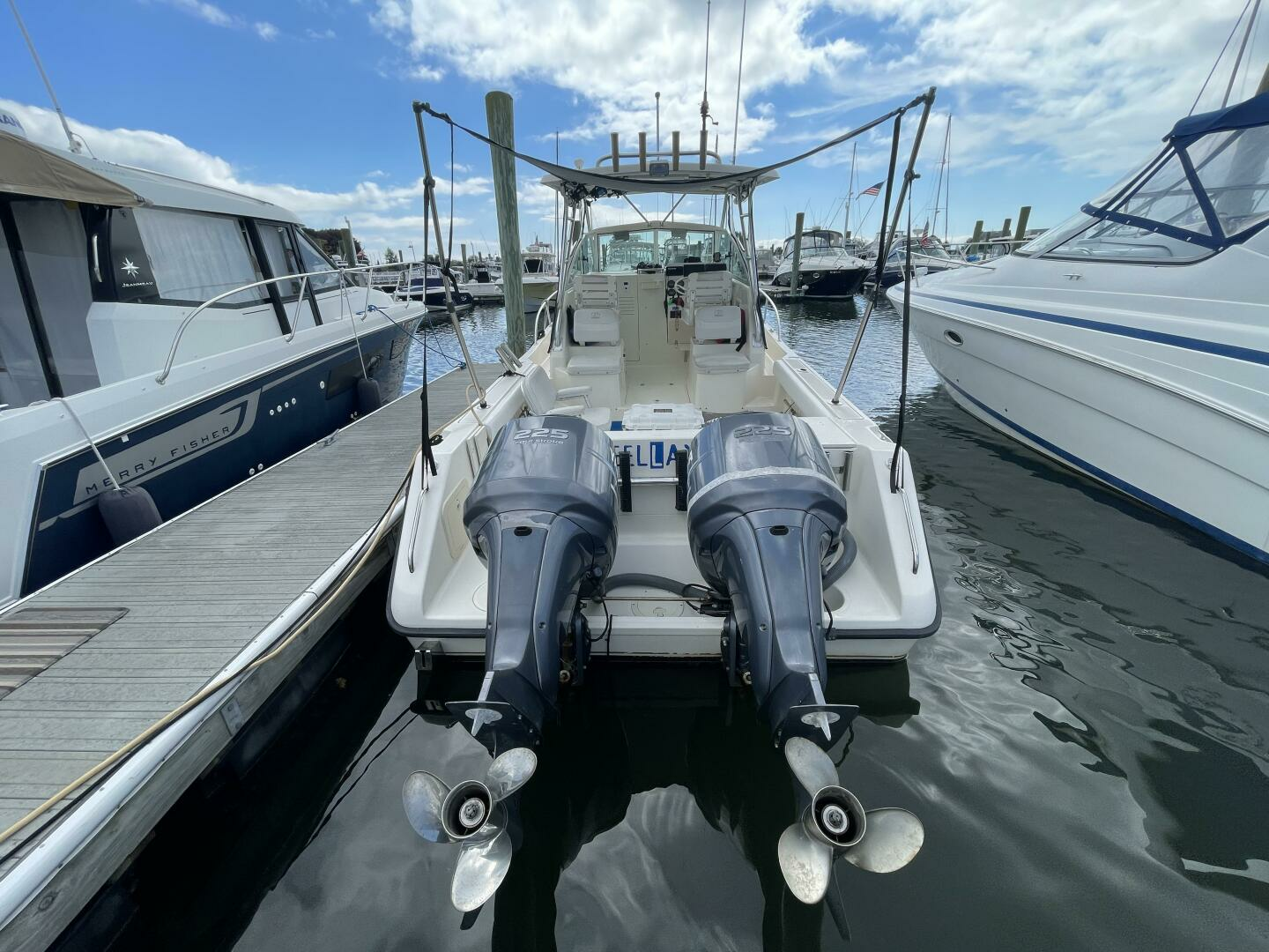 "REEL LAXED" is a beautiful boat and has been kept in amazing shape. Powered by Twin Yamaha 225 outboards with approx. 2500hrs. Both outboards have had the exhaust chambers inspected and repaired. Some of the features are: Raymarine 9" Axiom GPS/Plotter with Navionics software and a Quantum 2 Radar dome, Raymarine VHF Radio and Canvas Sunshade. "REEL LAXED" is a MUST-SEE 2870 Pursuit that can used for fishing or lounging around on anchor.