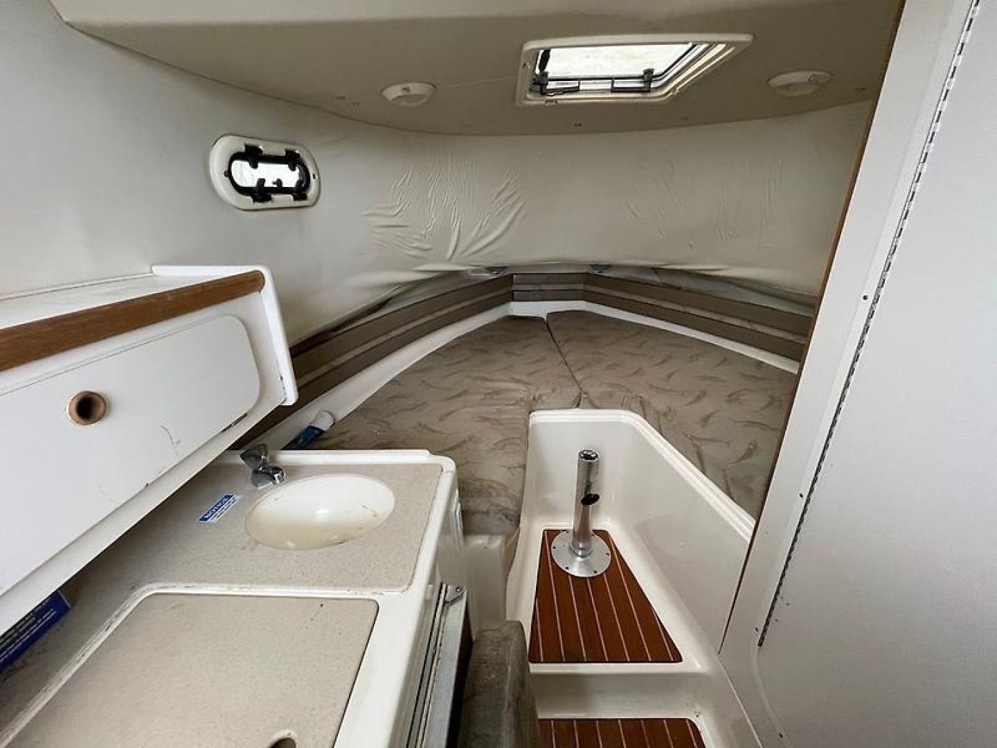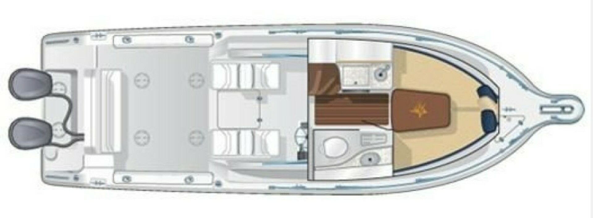 The Pursuit 2870 Walkaround is built to fish, yet replete with cruising comforts. It features backrests on the stern-facing seats and a tilting aft seat housing the 44-gallon fish box. The forward cabin is raked with a more angled, round-cornered windshield that adds style to her look. Twin Yamaha outboards and a unique hull design deliver a smooth, yet powerful ride. Rigged for landing the big game, the 2870 features a large, insulated cooler / fish box and livewell, four stainless steel rod holders, and additional storage under the gunwale. For total safety, non-skid can be found on all decks and wide walkways. Belowdecks, there is plenty of space and appointments, including a convertible V-berth with storage compartments, a galley, and an enclosed head with sink and pressure water. The cabin design has been created for maximum usable space and a host of conveniences, including optional air conditioning. Stylish fabrics and teak and holly flooring finish the cabin area in style.