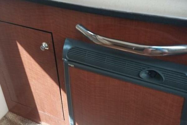 Descent head room, a full galley, and a V berth that converts into a second dinette. Built on a deep V hull with a moderate beam and an integrated swim platform, the Sundancer's curved radar arch is an appealing design touch that's showing up on a good many express boats these days. The single level cockpit is arranged with a sun pad opposite the helm, and aft facing bench seat, wet bar, and a retractable rear bench seat that folds up into the transom when it's necessary to get into the engine compartment. A large storage locker is built into transom, and molded steps at the helm provide easy access to the Walk through windshield. Powered with the 260hp MerCruiser sterndrives, the 280 will cruise in the mid to high 20s and reach a top speed in the neighborhood of 40 knots.