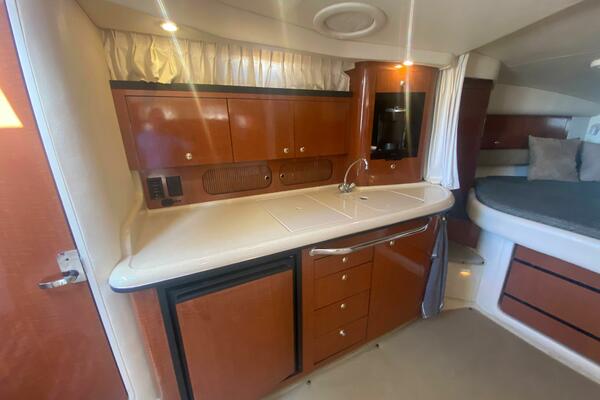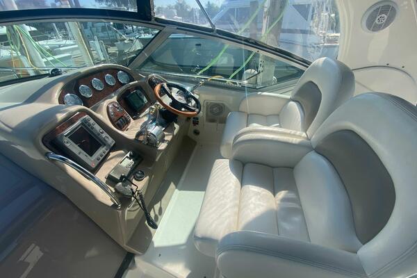 2003 Sea Ray 340 Sundancer – Classic Express Cruiser with Timeless Style The Sea Ray 340 Sundancer has long been one of the most popular express cruisers on the water, thanks to her spacious layout, dependable performance, and signature Sea Ray styling. This 2003 model blends comfort and versatility, making it an ideal choice for both day cruising and extended weekends aboard. Powered by twin MerCruiser inboards, the 340 Sundancer offers smooth handling and reliable performance. The cockpit is designed for entertaining, with generous U-shaped seating, a wet bar, and a double helm seat with excellent visibility. A large swim platform makes boarding easy and is perfect for water sports or relaxing at anchor. Below deck, the cabin is bright and open with cherry cabinetry, premium finishes, and a practical layout. The forward island berth provides a comfortable space for overnighting, while the mid-cabin converts easily for additional sleeping or lounging. The galley is well-equipped with refrigerator, cooktop, microwave, and sink, while the enclosed head includes a VacuFlush® toilet and shower. The 2003 Sea Ray 340 Sundancer is a proven favorite for boaters who want a balance of style, comfort, and performance. With her inviting accommodations and solid build, she’s ready to deliver countless memories on the water.