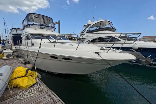 The 2003 Sea Ray 435 offers comfort and versatility with 2 staterooms and 2 heads, ideal for family cruising. Powered by twin Cummins 417 hp engines with ~1500 hrs, it delivers up to 25 knots. A practical and stylish motor yacht, perfect for exploring and enjoying Panama waters.