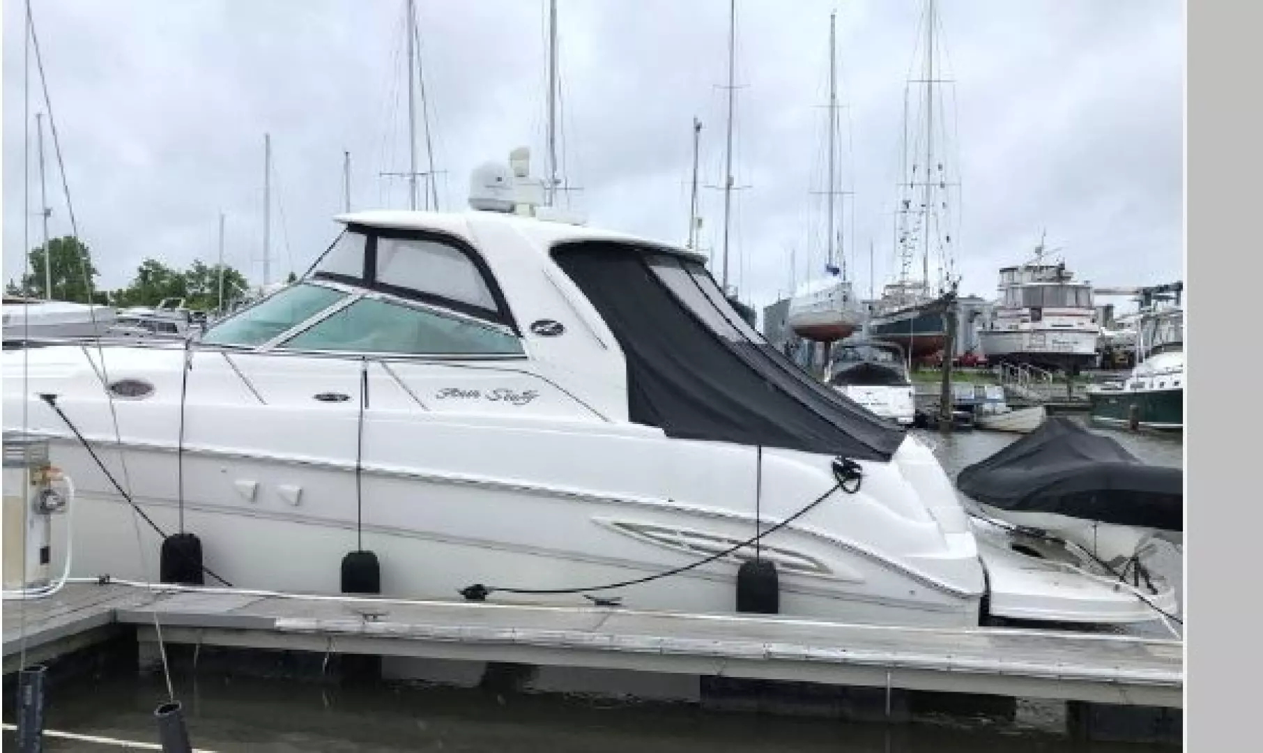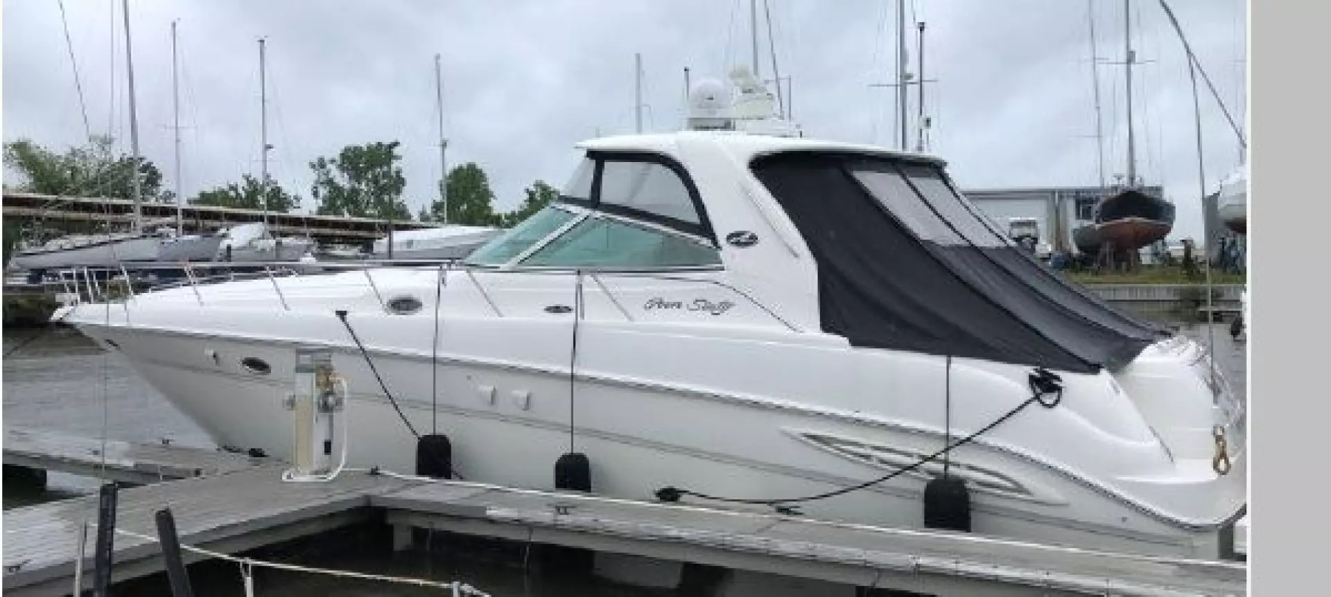 The NAUTI OR KNOT was purchased by her present Owners in early 2017. She's been lightly-used .. and very well-maintained .. in her fresh-water berthing location ever since. The addition of the new OXXEAN tender & YAMAHA 20 HP outboard motor add considerable versatility when cruising. The included Hard Top, hydraulic lift swim platform, newer RAYMARINE electronics, canvas & cushions, VETUS bow-thruster AND stern thruster .. "and more" .. are features that all contribute to a very desirable package.