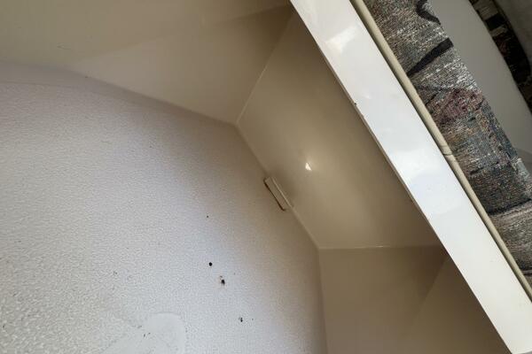 Engine space was re-glassed and painted while the engine was removed and new sound insulation was installed in the engine compartment.