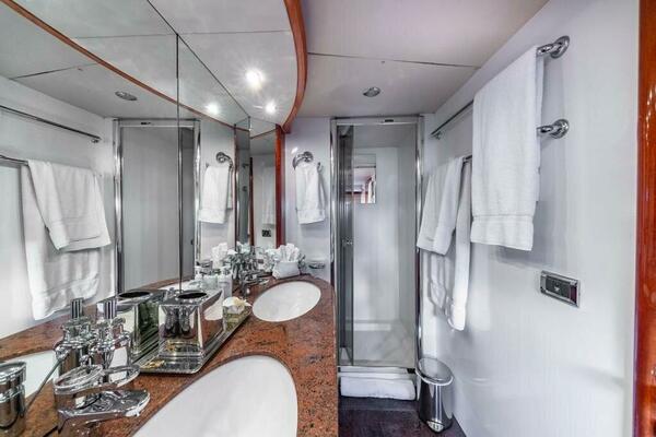 The 82' Sunseeker Yacht accommodates up to eight guests in four elegant staterooms, including a spacious Master Suite, VIP cabin, and two guest rooms. Each stateroom is beautifully finished with refined materials, ample storage, and a private en-suite head.