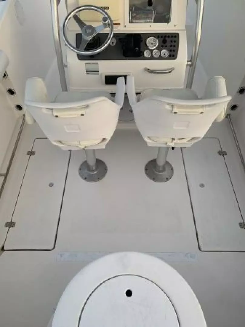The Aquasport 205 Osprey delivers flat-out fishability in all types of water for anglers and families alike. Her performance hull features wide strakes and deep chines for responsive maneuverability in all kinds of water. Amenities include a deep bow area and a full transom with door, tons of storage and a 100-quart lighted livewell.