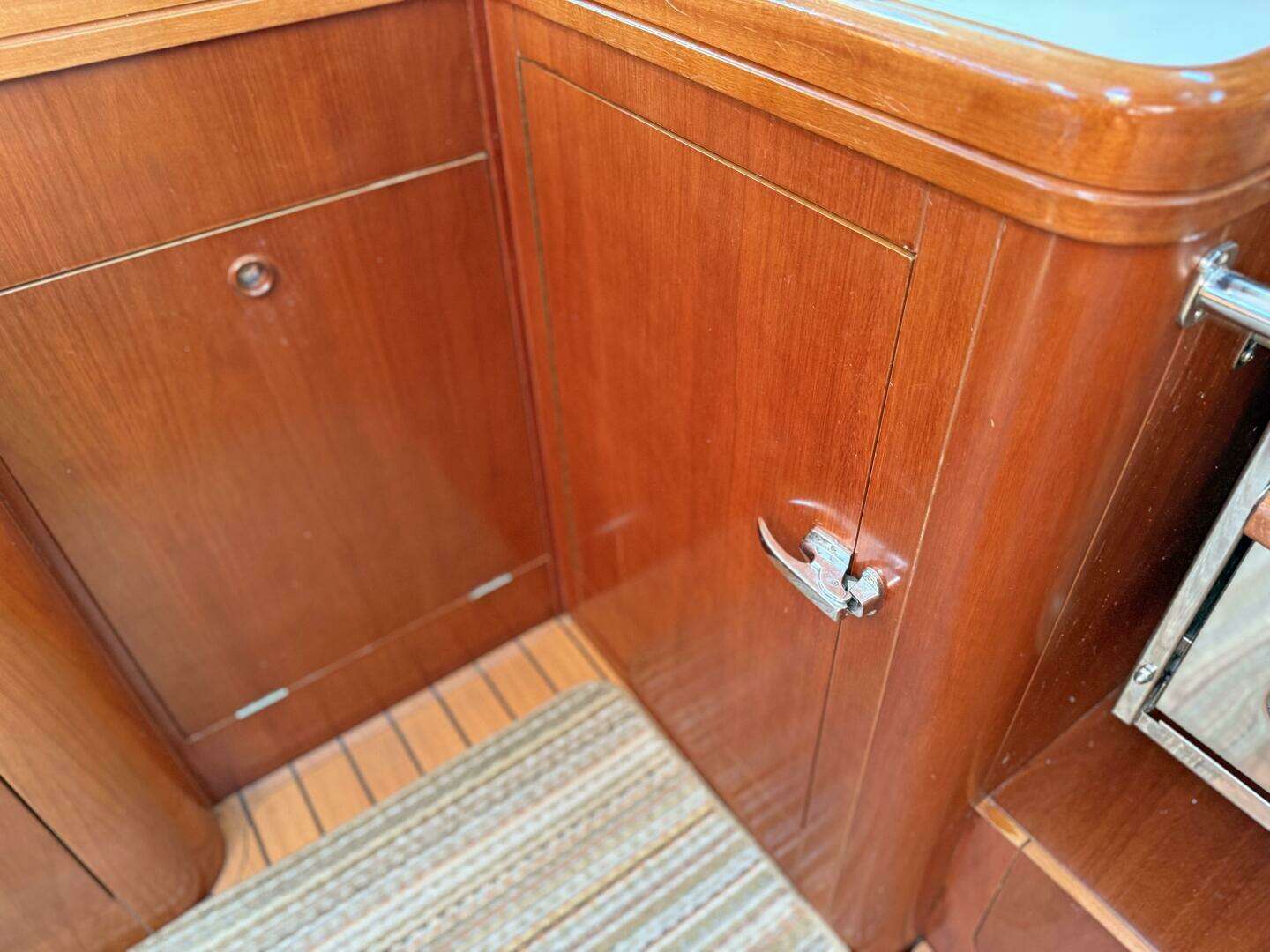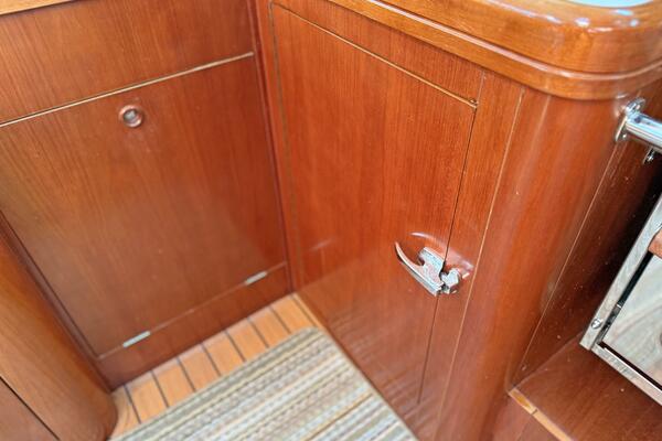 All the way aft is the guest cabin with a king-sized bed and lots of storge space. Private access to the aft head.