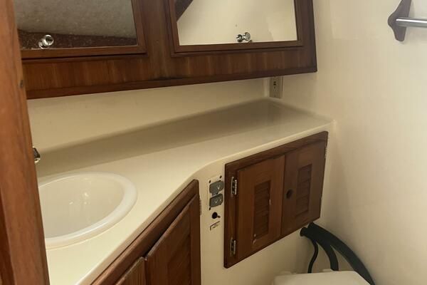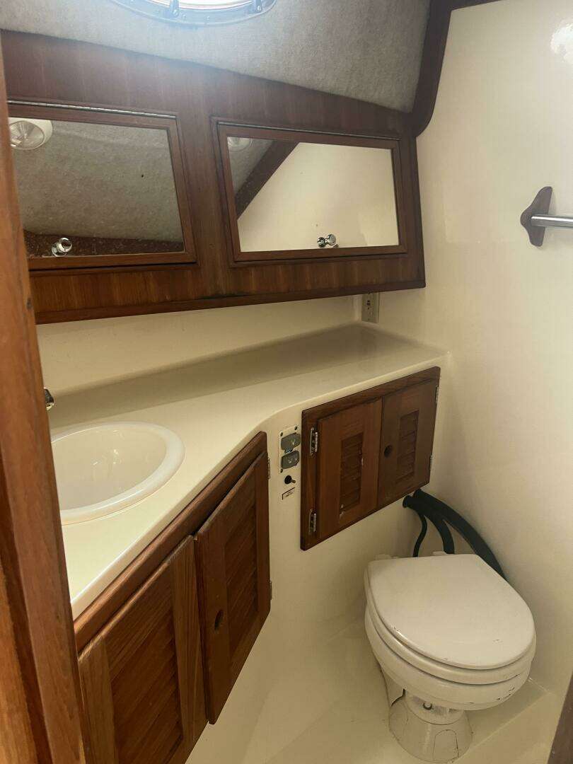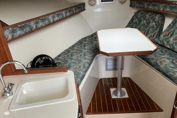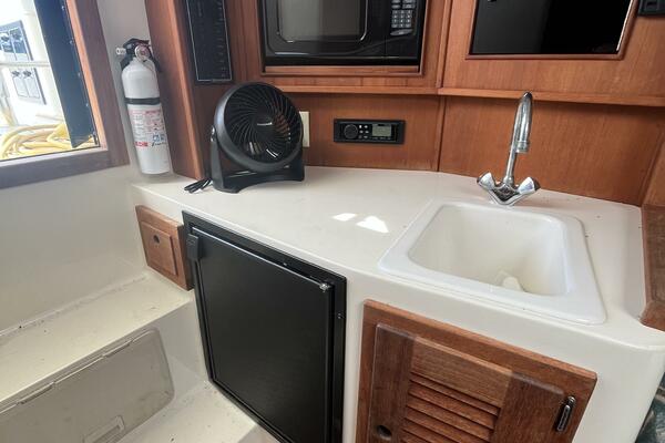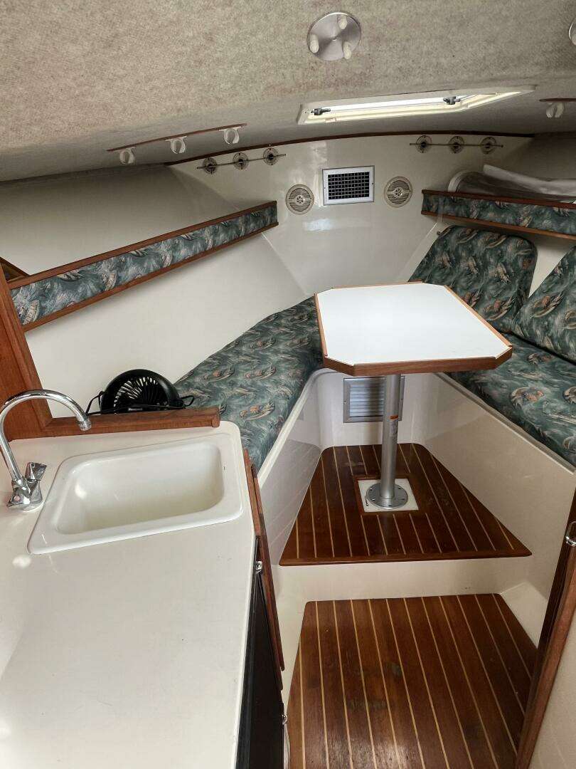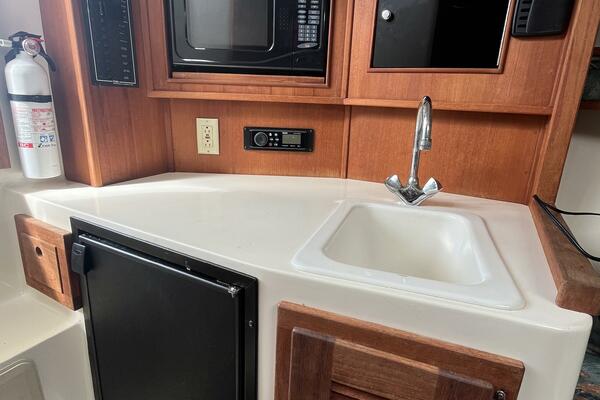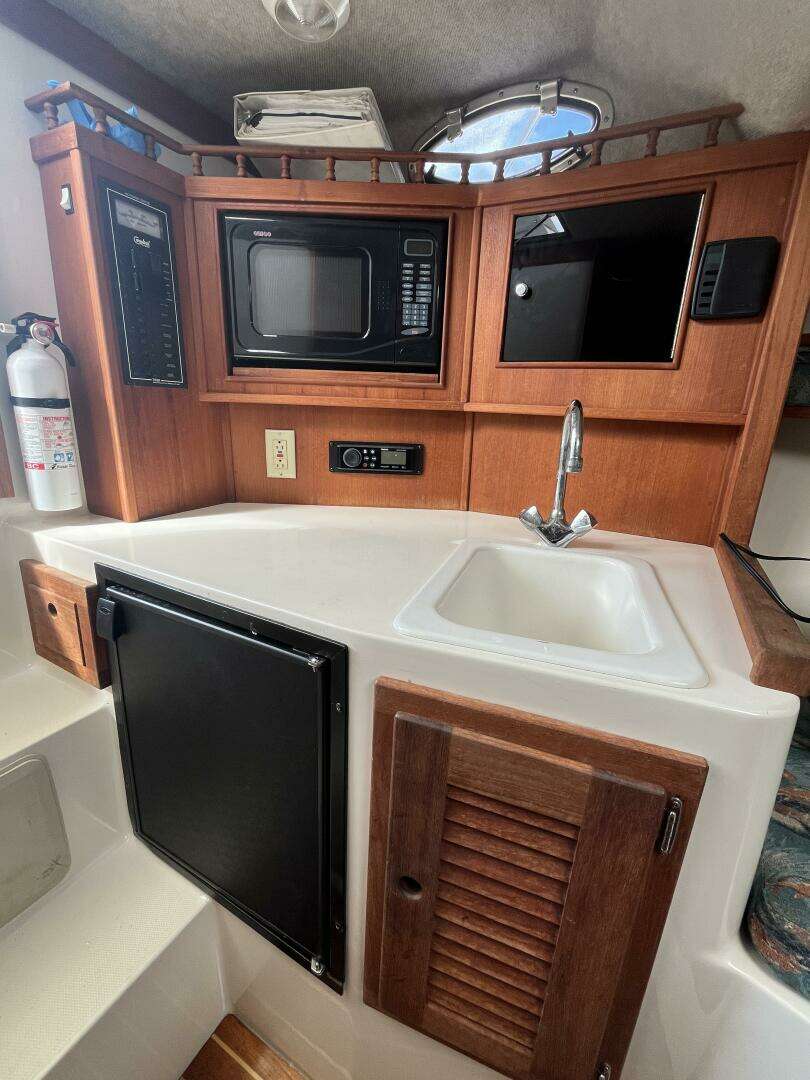 - Cabins: Includes a cabin with a V-berth, galley (sink, refrigerator, microwave), and a full walk-in electric head with a shower.