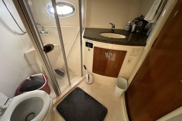 - Head with a Shower Stall, Vanity, Vac-u-flush toilet