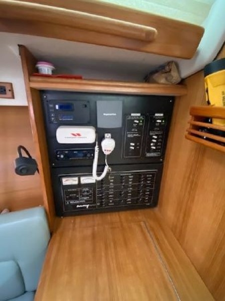 - Standard Horizon VHF radio w/remote mike in cockpit