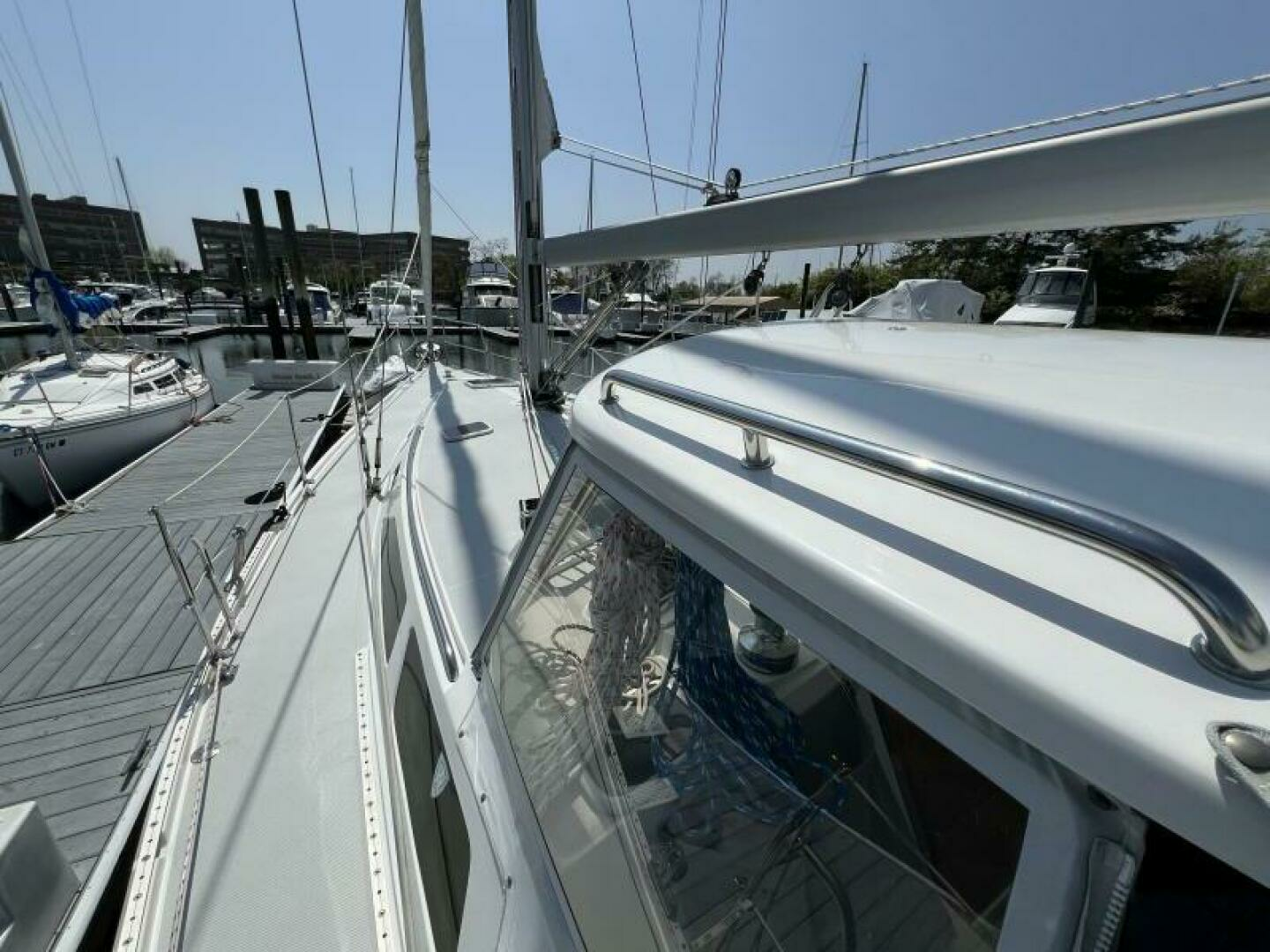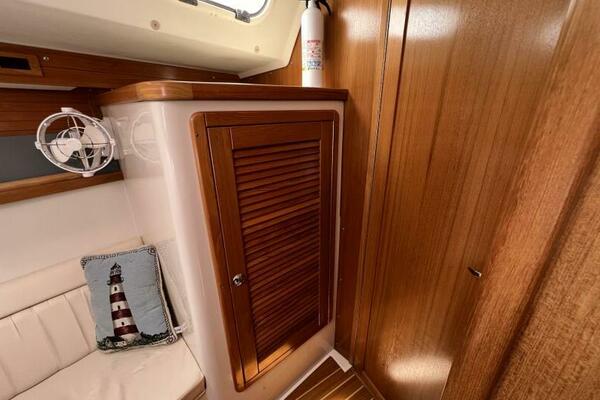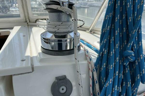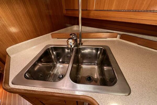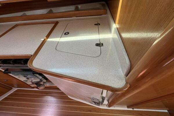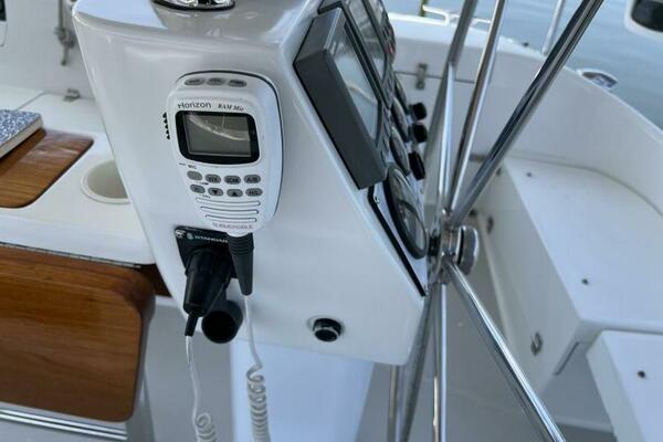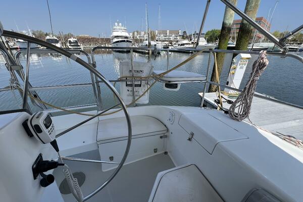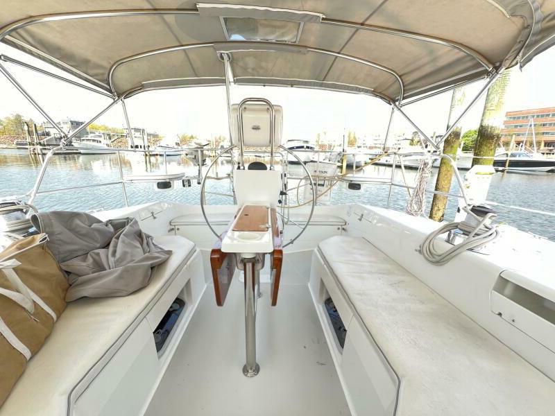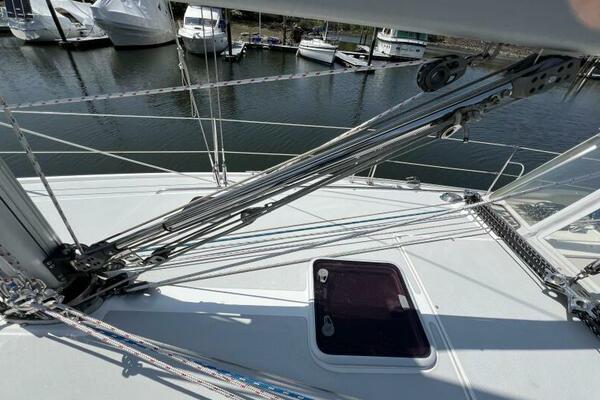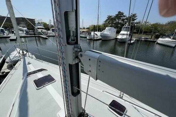 Two requirements of the 42 Mk II according to Gerry Douglas, designer, "were that the shape have lots of volume but still be slippery." With a 3-cabin (master V-berth with queen on centerline), 2 head layout and European-influenced cockpit and rounded stern, SERENITY TOO is comfortable at sea or at rest. She offers good natural light and ventilation, storage space and a thoughtful layout. The Seller has made several improvements such as adding air conditioning in 2007 and then replacing in 2017, upgrading to electric toilets, replacing the generator in 2016 and running rigging in 2023. The hardtop dodger and canvas bimini and filler piece provide shade and comfort from the elements. Furling main and jib, bow thruster and electric winch make short-handed sailing easy. YANMAR 56 hp engine and FISCHER PANDA generator provide power to spare.