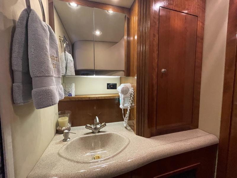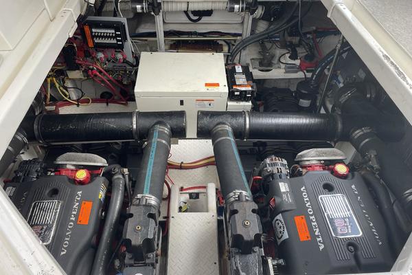 "DREAM BOAT" is an immaculately kept 400 Express that has it all! This boat has lived its life enjoying fresh water only!!! Powered by Twin 8.1L GII-E Volvo engines that are fresh water cooled with v-drives and only 676hrs. Built in Kohler generator with only 1735 hours.
