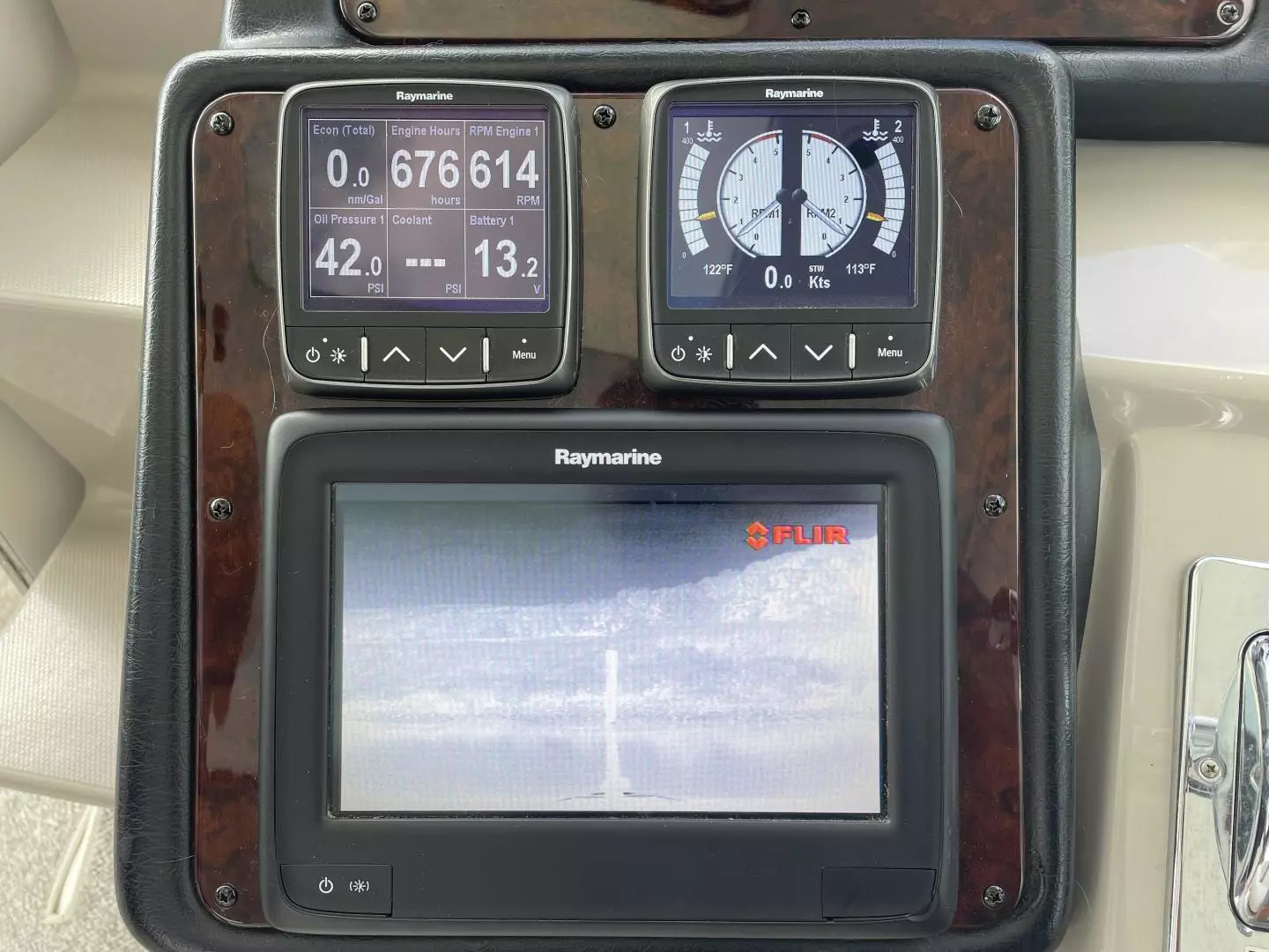 Notable Upgrades: Raymarine "A"Series electronics package includes 12' and 9" Multi-Function Displays with GPS/Chartplotter, Radar, and FLIR night vison plus security system, 4 instrument displays and one Autopilot. |