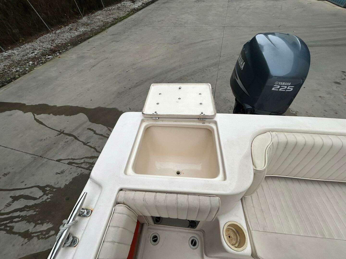 2004 Grady White 232 Gulfstream Walkaround powered by a reliable F225 Yamaha with only 700 hours of run time. This boat features a hard top with spreader lights, front and side curtains, and drop curtain, windshield washer, stereo, port-a pottie, full swim platform with ladder, sleeps two in the cabin bunk style upper and lower berth, Garmin GPS, windlass with bow pulpit, trim tabs, newer dual batteries with switch, raw and freshwater washdown and more. Cabin has lockable door and companionway hatch, port side galley and sink. The owner has the original GW helm seat which he replaced with a more comfortable bolster style seat. She has two gas tanks, main tank is 90 gallons, and the AUX tank is 50 gallons.