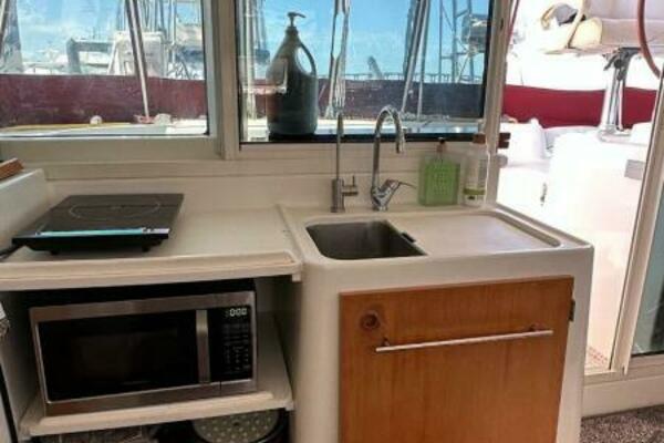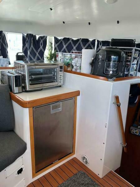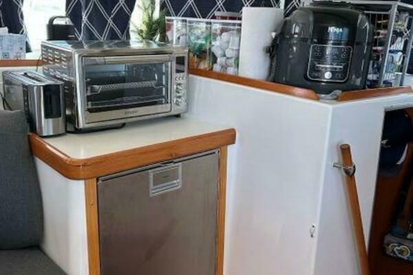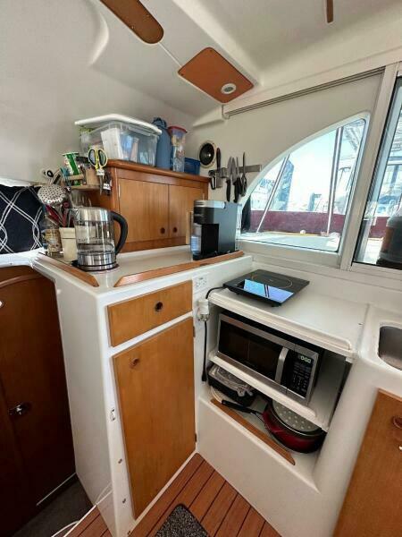 Note: no propane, all electric and portable cooking appliances allowing outdoor cooking when trying to keep inside of boat cool