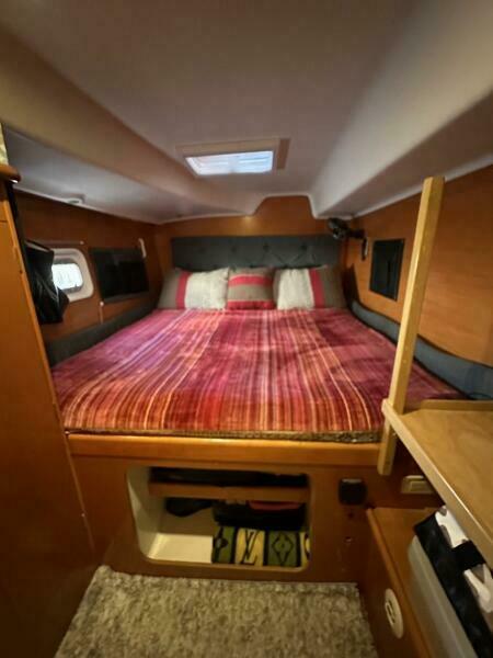 - Port aft – Bamboo queen mattress with double fold, Vio 27” TV, 12v fan, electrical management install under the bed