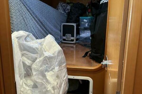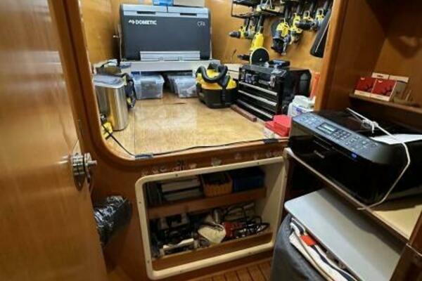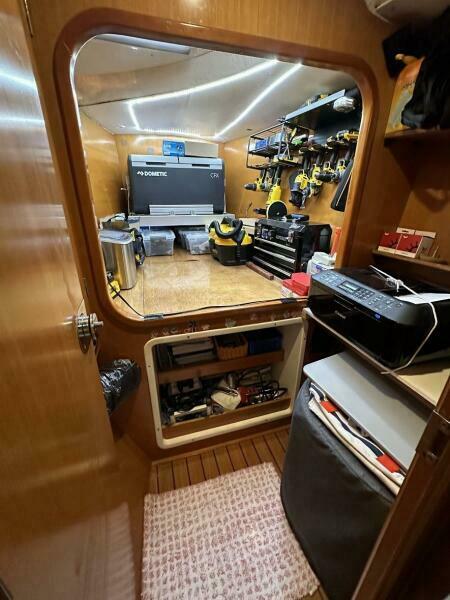 - Starboard forward - Converted to a tool room and storage. Dometic 12v 95L freezer or fridge/freezer on custom mount allowing easy access to storage below, mounts for portable power tools