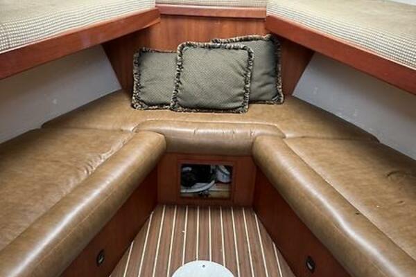 The Luhrs 30 Open (called the Luhrs 31 Open in 2006–08) is one of a handful of small inboard-powered express boats built in recent years. (The vast majority of modern express fishing boats are outboard powered.) She’s built on a solid fiberglass deep-V hull with a wide 11'10" beam and prop pockets to reduce draft. Standard features include a fiberglass hardtop, molded bow pulpit, bait prep center with sink, 45-gallon standup LiveWell, tackle drawers, fresh/raw-washdowns, cockpit bolsters, trim tabs, transom fish/storage box, in-deck fish boxes, and transom door. The helm deck lifts for engine access. Below, the well-appointed interior on the 30/31 Open sleeps four and includes a teak and holly sole, full-service galley with fridge and Corian counter, and a convertible dinette/V-berth with hinged backrests. She has a fukk size marine head with stand-up shower. This particular vessel has the upgraded Yanmar diesel package. with a boastful 340-mile range and 24 - 25 kt cruise it will get you to the fishing grounds and back with comfort and ease.