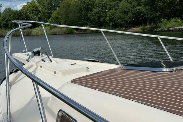 The boat is equiped with a bow thruster and stern thruster making manuverablitiy easy around the docks and tight locations.