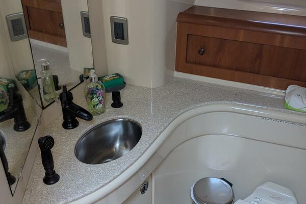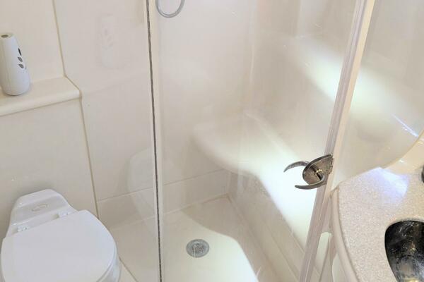 - Owners’ Bath / Head with separate stall shower and fresh water, electric Vacu-Flush commode