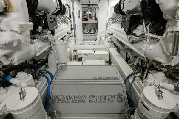 The 2004 72 Merritt Business Stinks is a 2 owner vessel. This beautiful Merritt is equipped with 3 SeaKeepers, Furuno sonar, Starlink, and newer Garmin electronics. The highly knowledgeable owner and captain have kept her well maintained. Business Stinks has 4 staterooms, 3 heads and will cruise 35 Knots in style. The boat is in fantastic condition and is ready for her next owner.
