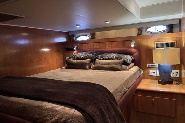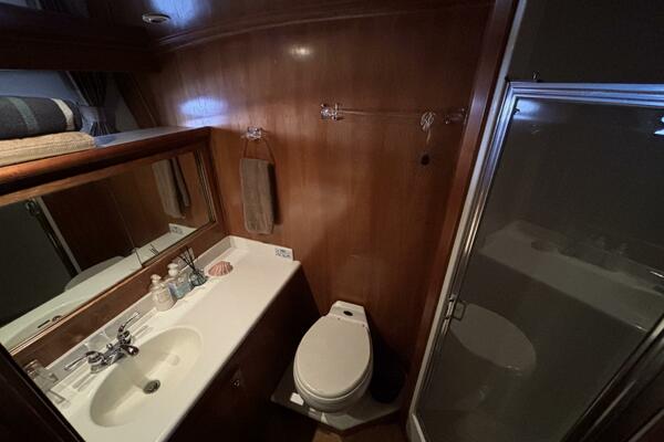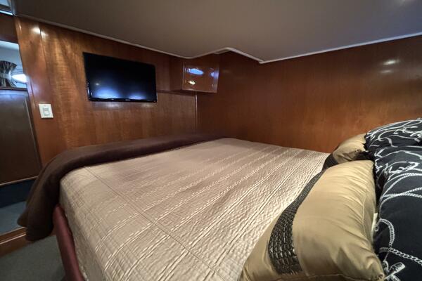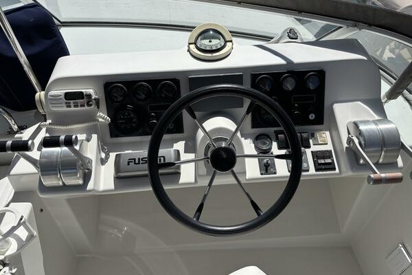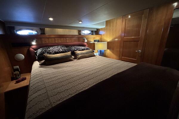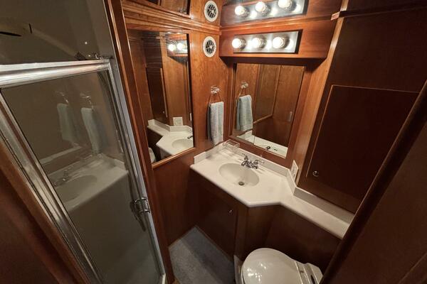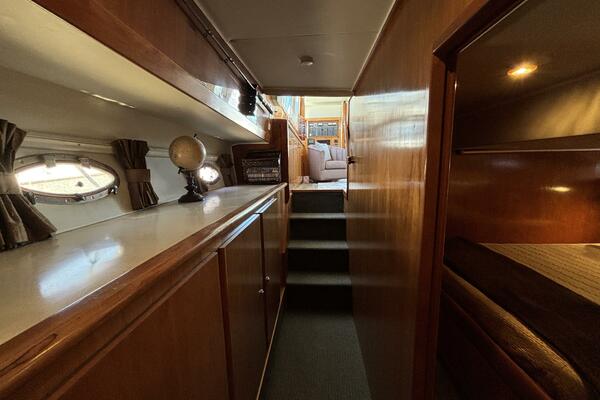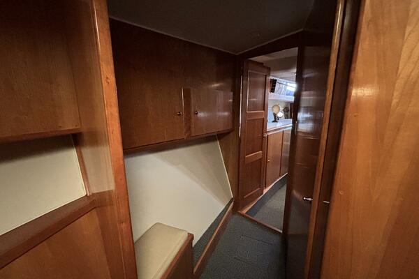 Her twin 305 hp Volvo TAMD63L-A diesels have low 800 hours and have recently been serviced. Her modified V hull is solid glass laminated with Vinylester with a 15-degree deadrise, which allows for faster cruising speeds at lower RPMs. She cruises easily at 15kts and can do over 20kts at full speed. The engine compartment has custom-designed Soundown exhaust system that makes her one of the quietest twin-engine motor yachts available in her class.