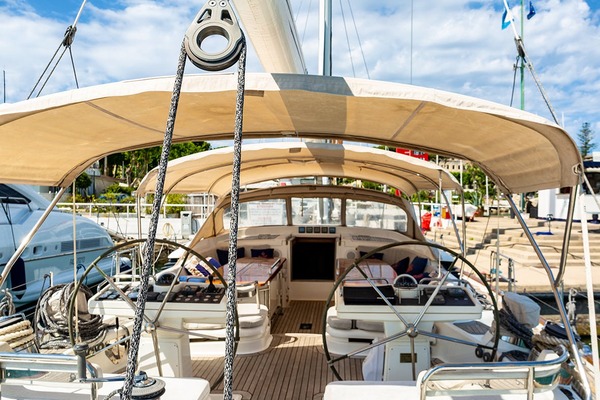 - BIMINI TOP: Yes, with a connection between bimini and sprayhood.
