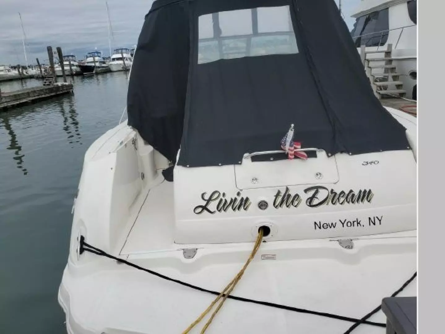 The popular 340 Sundancer combines high performance, comfort and quality in a sleek cruising package. Livin the Dream is fully optioned, with Generator, Air Conditioning, Entertainment Center, Full Canvas package. Her engines have only 455 hours. Service is up to date including recent manifolds and risers. If a Sea Ray Express Cruiser is in your future you owe it yourself to tour this vessel. She is a clean, honest vessel. Call for a showing today.