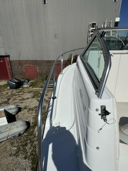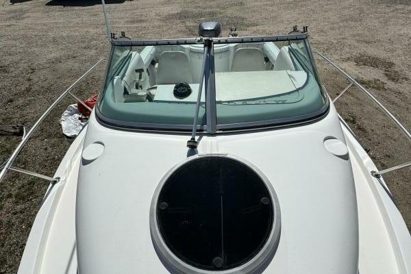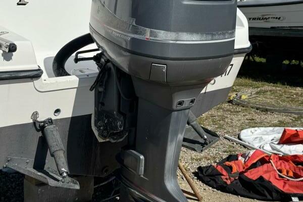 - Trim tabs, swim ladder, bimini top, and full canvas enclosure