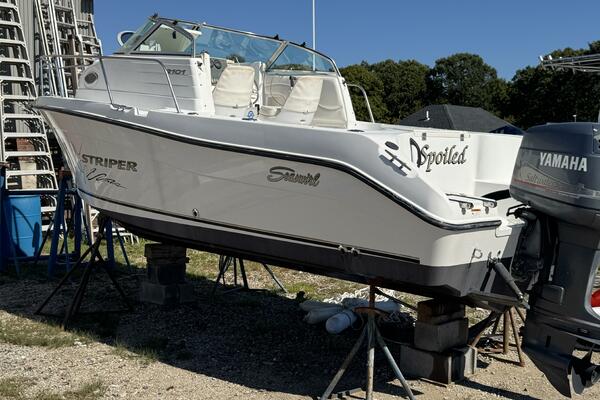 Powered by a reliable Yamaha 150 HP two-stroke, this Striper delivers the legendary performance and dependability Yamaha is known for — quick to plane, smooth through chop, and efficient to run. Whether you’re chasing fish offshore or cruising the bay with family, she handles it all with ease.