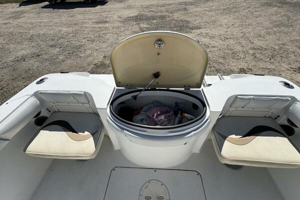 - Spacious cockpit with rod holders, live well, and fish boxes