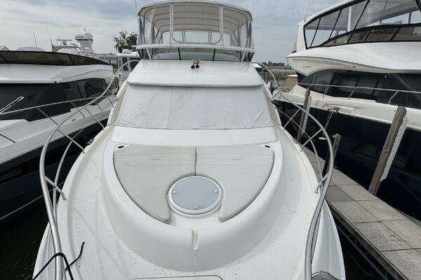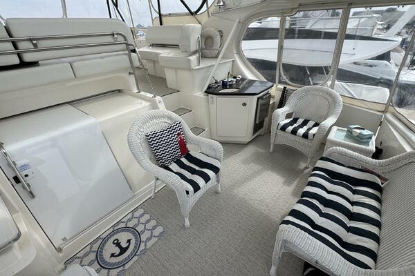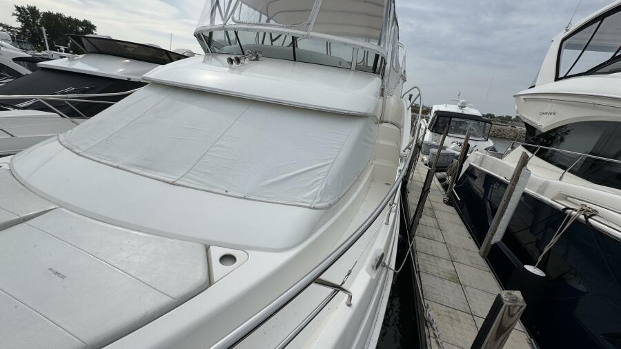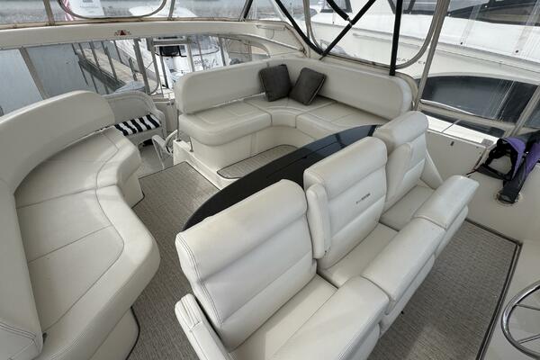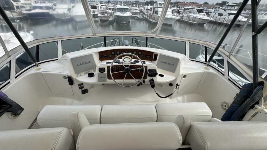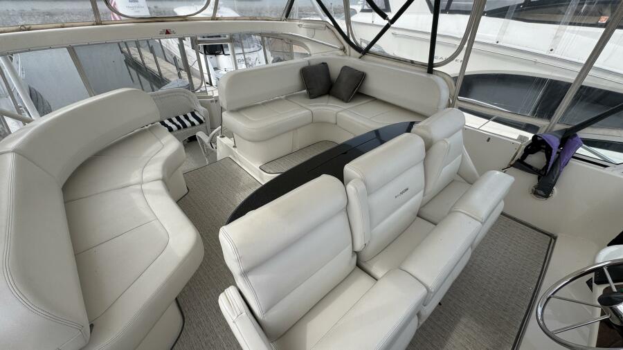 Topside, the fully enclosed aft deck with wet bar and icemaker flows easily to the flybridge, where guest seating and excellent visibility enhance the cruising experience. Silverton’s “SideWalk” design makes bow access safe and convenient.