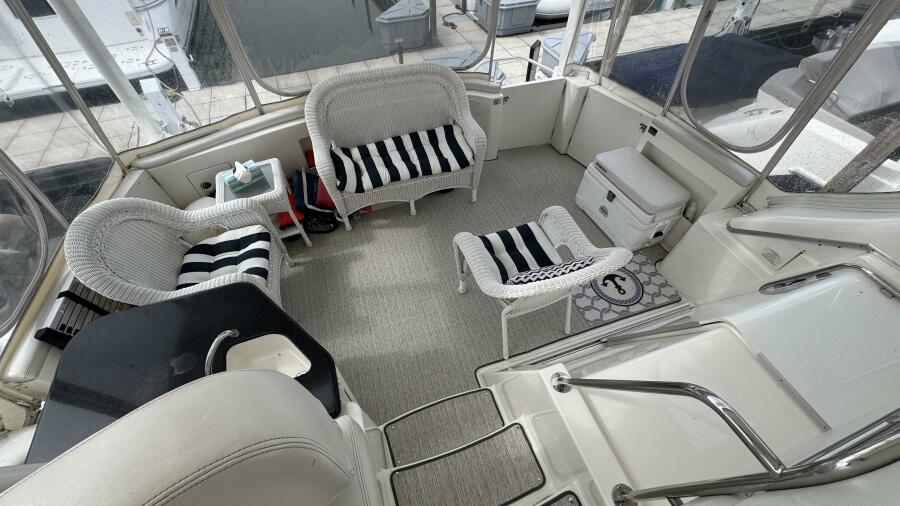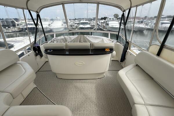 Boarding is simple via the molded swim platform and curved stairs leading to the fully enclosed aft sundeck with Isinglass and screen options.