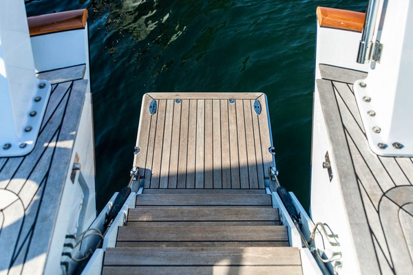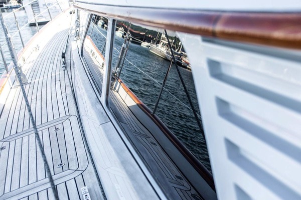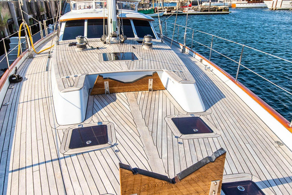 The composite hull is built in a sandwich structure using Core-cell foam core and E-glass with an additional five layers of Kevlar incorporated for extra strength. The deck and pilothouse are also sandwich construction with E-glass. Centerboard configuration offers minimum draft of 6’-6” with board up and a maximum draft of 18’ with board down.- Classification: Lloyd’s HCC (Hull Construction Certificate)