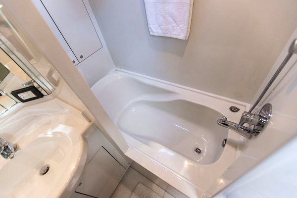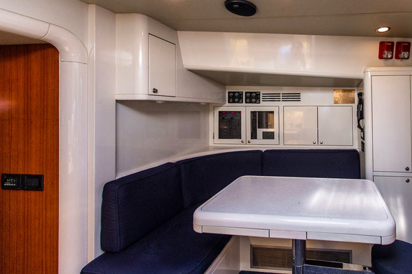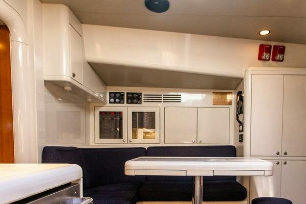 Two double crew cabins are located forward of the galley. Each cabin has its own sink and toilet and shares a centrally located shower. The crew mess is equipped with its own entertainment center, including LCD TV (2018), with High-Def Satellite, Sonos and Apple TV. Miele washer and Miele dryer are located beside the crew mess for easy access.COCKPIT
