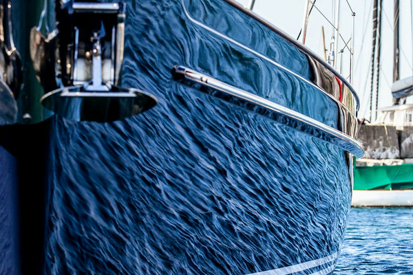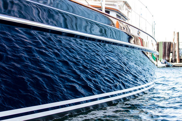 - “Midnight Blue” Awlgrip hull (2021) with varnished teak exterior trim