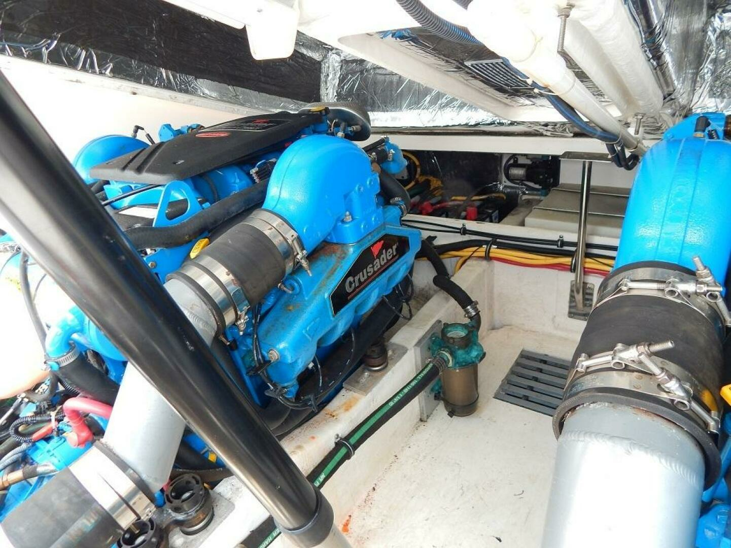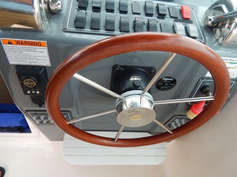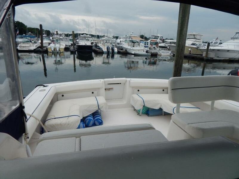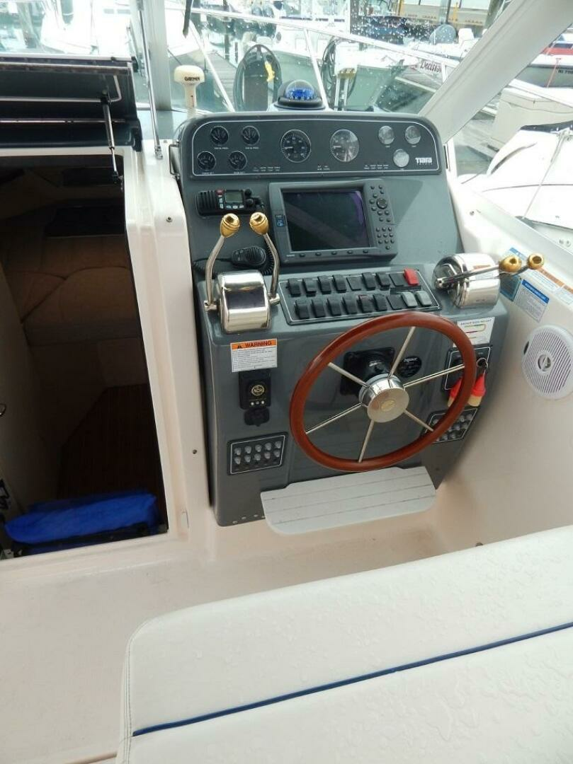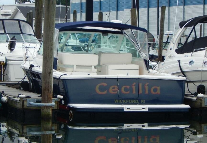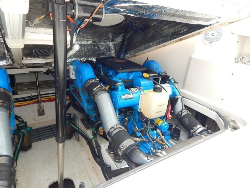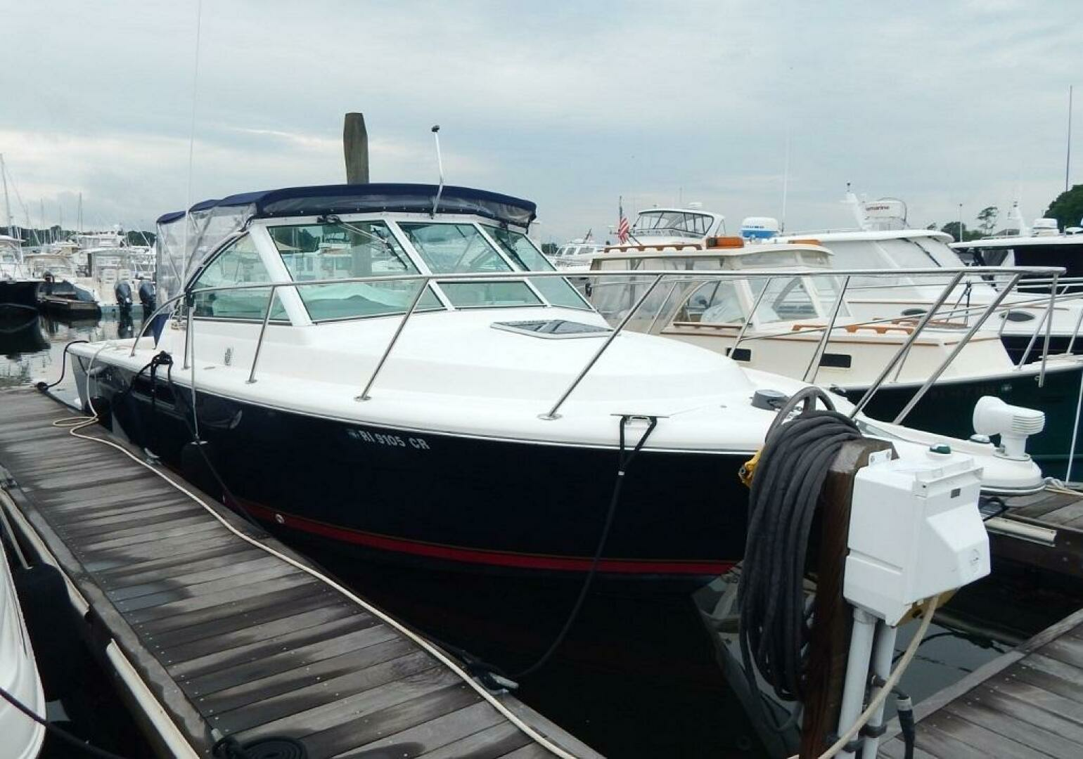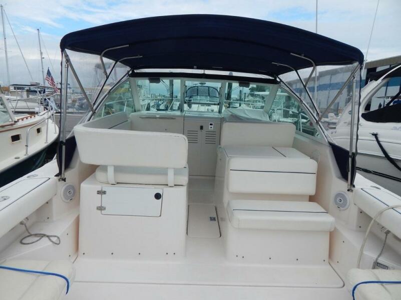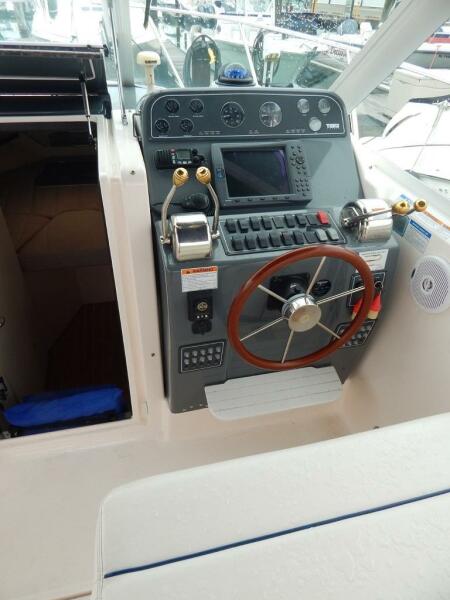 This seaworthy boat is the perfect entry point for the Tiara you've always wanted. Constructed with modified-V hull with wide beam and substantial transom deadrise. This much sought after Harbor Edition Coronet is the perfect Day or Weekend vessel, great for entertaining with a cockpit wetbar or equally suited for a day of fishing. The single level, wide-open cockpit is among the largest to be found in a vessel this size and has plenty of seating and storage. Popular navy blue hull and bimini top with full enclosures. Sleeps two forward in v berth. Compact galley to starboard with microwave, Isotherm ref / freezer, stainless steel sink, Formica counter tops. Teak & Holly sole. Centerline transom door with swim platform.