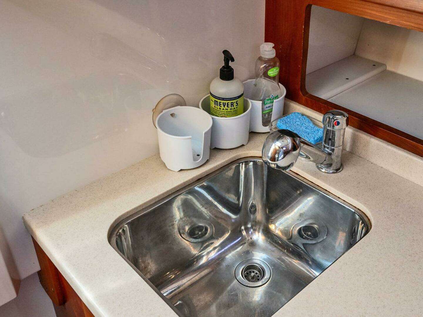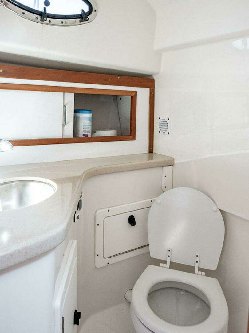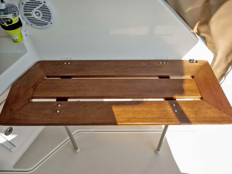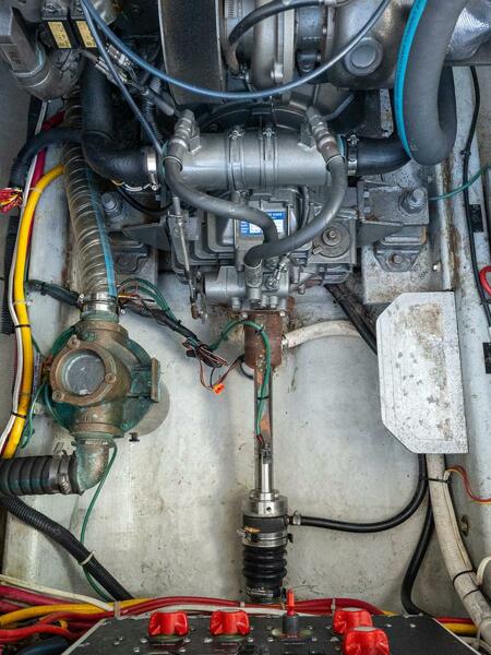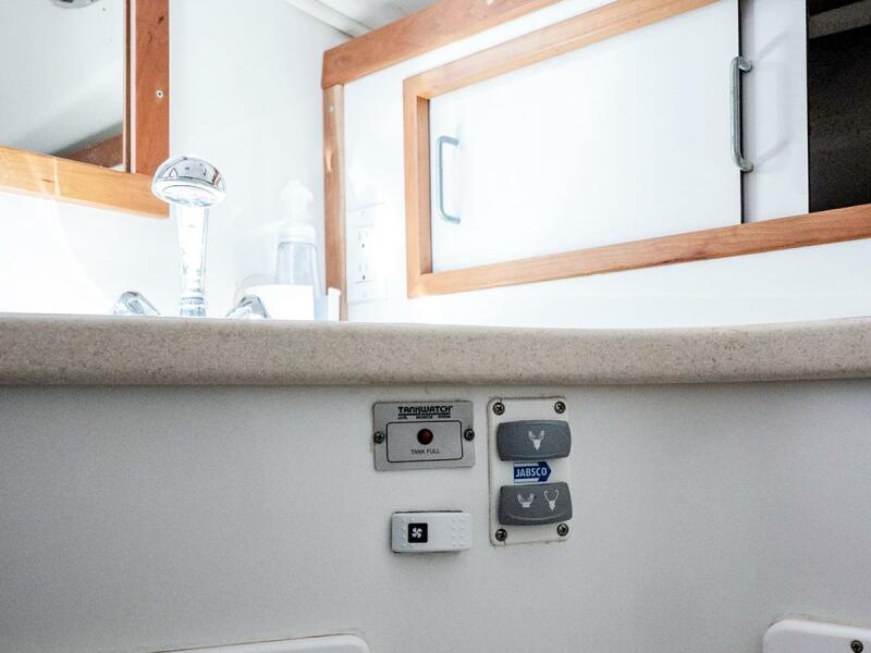 Below the surface, she is modern and contemporary. A deep-vee hull with prop recess and standard trim tabs offers comfort and performance. With her upgraded 315 horsepower, 6-cylinder diesel engine, she reaches a top end of 26 knots and will cruise very comfortably in the mid 20's. Around the docks, you will appreciate the maneuverability provided by her bow thruster.