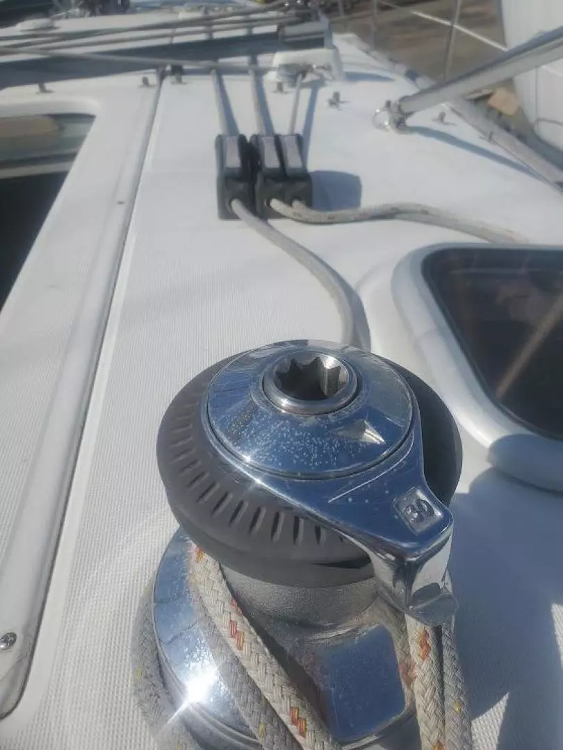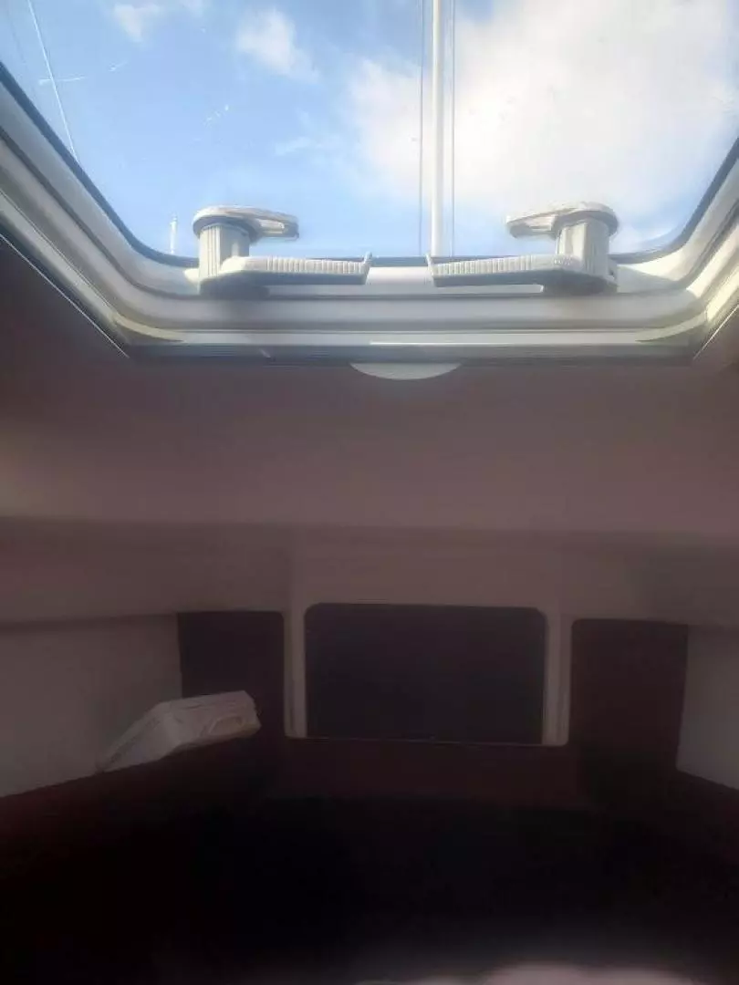 The large skylights in the saloon create an interior that is bright and airy. The mahogany woodwork adds a touch of warmth. The entire interior is well ventilated. There are five opening overhead hatches, eight opening ports and four fixed hull ports.