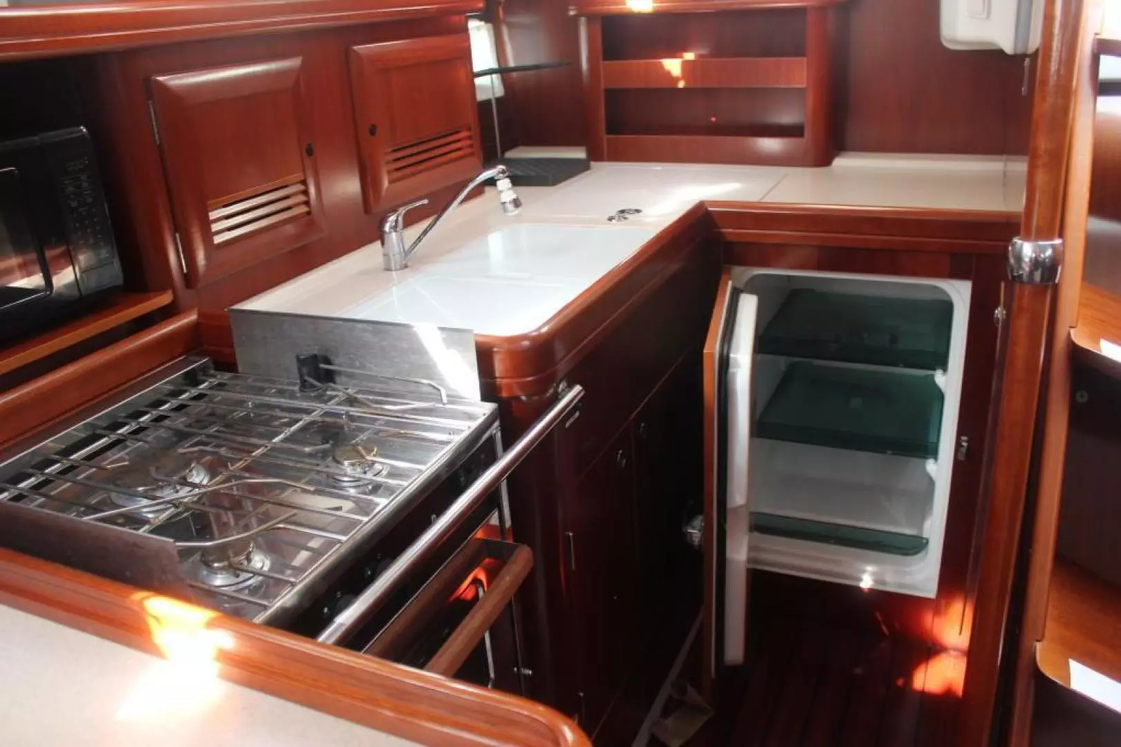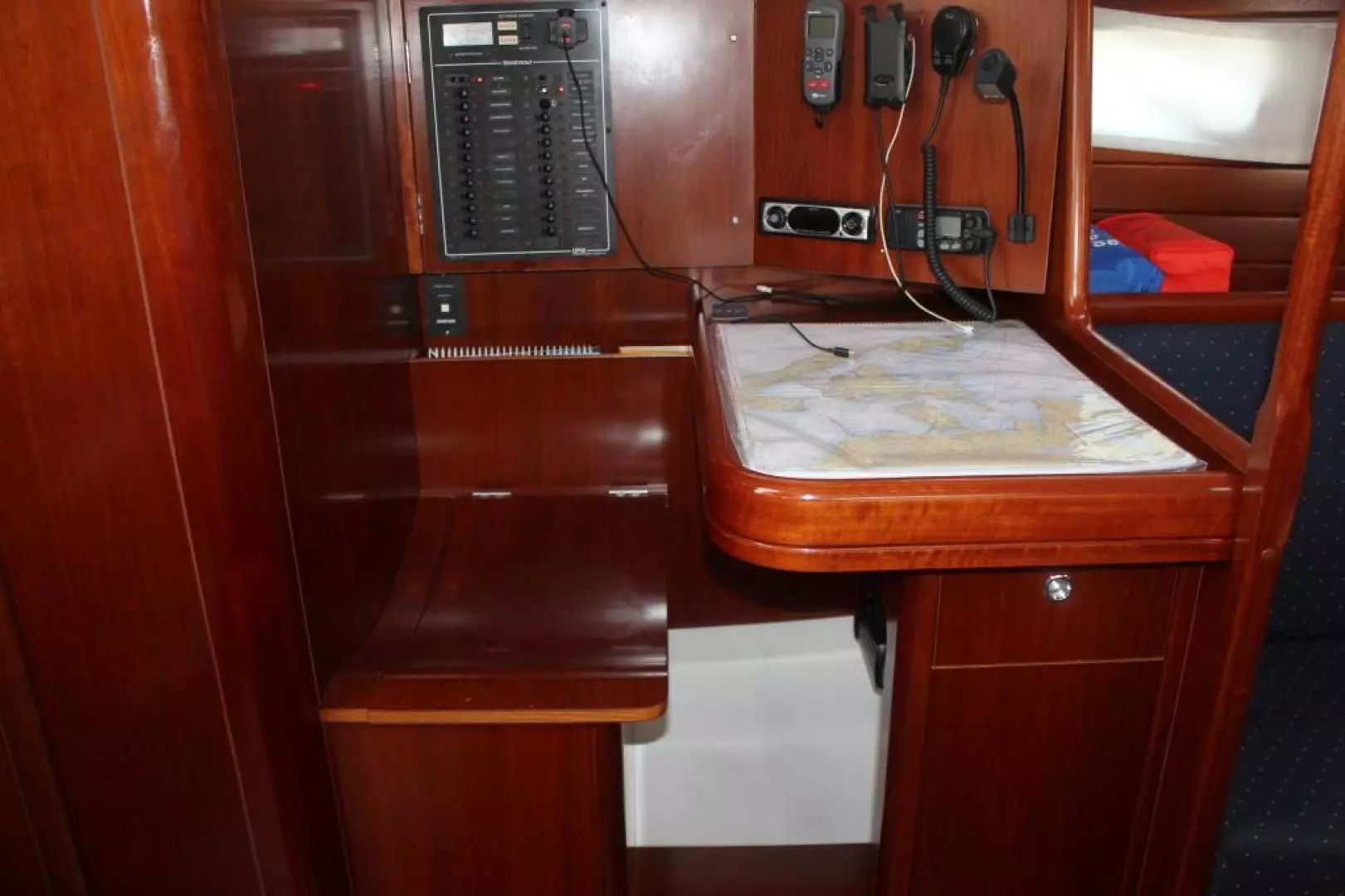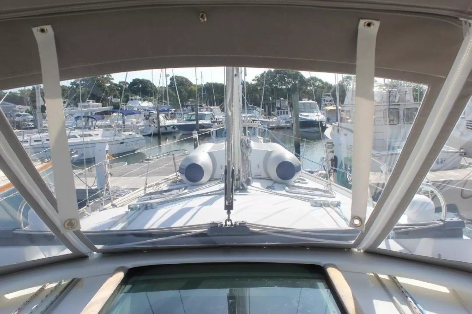 Stardust offers a very airy, light & open floorplan. The 2-zone air-conditioned main salon features u shaped seating around a large dining table that has a removable leaf. The table then converts to a cocktail size table and also drops to make a double berth. There is a bench seat on the centerline for seating around the entire table. To port is the straight settee and forward facing nav station. Aft of the nav station is a full head with shower and aft of the head is a full size double berth in the aft stateroom. Aft and to starboard is the large galley that features a front opening refrigerator and a top loading freezer, double ss sinks, propane stove & oven as well as abundant storage. The forward owners cabin offers a large center island berth with storage drawers beneath. There is a changing seat as well as a large hanging locker and two storage lockers. The master head features a separate shower.